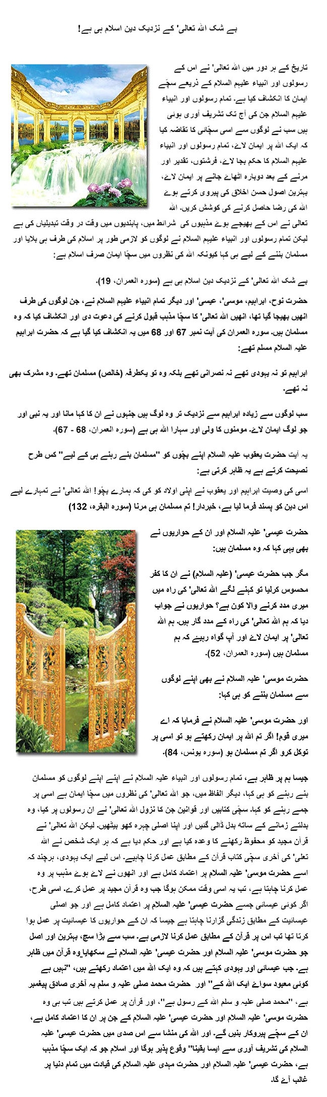 سب لوگوں سے زیادہ ابراہیم سے نزدیک تر وہ لوگ ہیں جنہوں نے ان کا کہا مانا اور یہ نبی اور جو لوگ ایمان لائے۔ مومنون کا ولی اور سہارا اللہ ہی ہے(سورة العمران، 67-68)