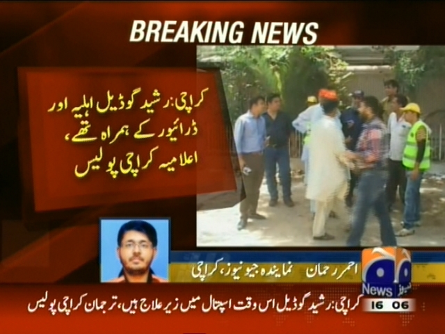 عبدالرشید گوڈیل پر حملہ، ایڈیشنل آئی جی کراچی نے تحقیقاتی کمیٹی تشکیل دے دی، تحقیقاتی کمیٹی ڈی آئی جی ایسٹ کی سربراہی میں کام کرے گی، ترجمان، کمیٹی میں ایس ایس پی ایسٹ، ایس ایس پی انو سٹی گیشن شامل ہیں، تحقیقاتی کمیٹی میں ایس پی اسپیشل انو سٹی گیشن بھی شامل ، رشید گوڈیل اہلیہ اور ڈرائیور کے ہمراہ تھے، اعلامیہ کراچی پولیس۔