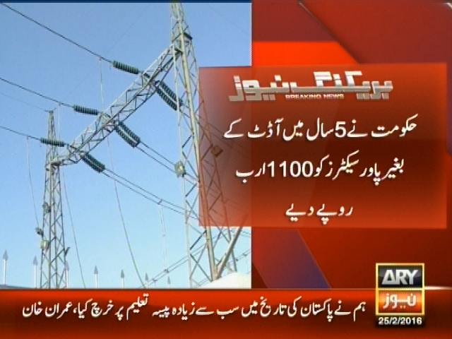 بنا آڈٹ پاور سیکٹر کو اربوں روپے کی ادائیگیاں، حکومت جواب دینے سے قاصر، 480 ارب روپے سرکلر ڈیٹ کی ادائیگی کا حکومت کے پاس جواب نہیں، حکومت نے 5 سال میں آڈٹ کے بغیر پاور سیکٹرز کو 1100 ارب روپے دیے، ادائیگیاں وزارت خزانہ کی ہدایت پر کی گئیں، اسٹیٹ بینک حکام۔