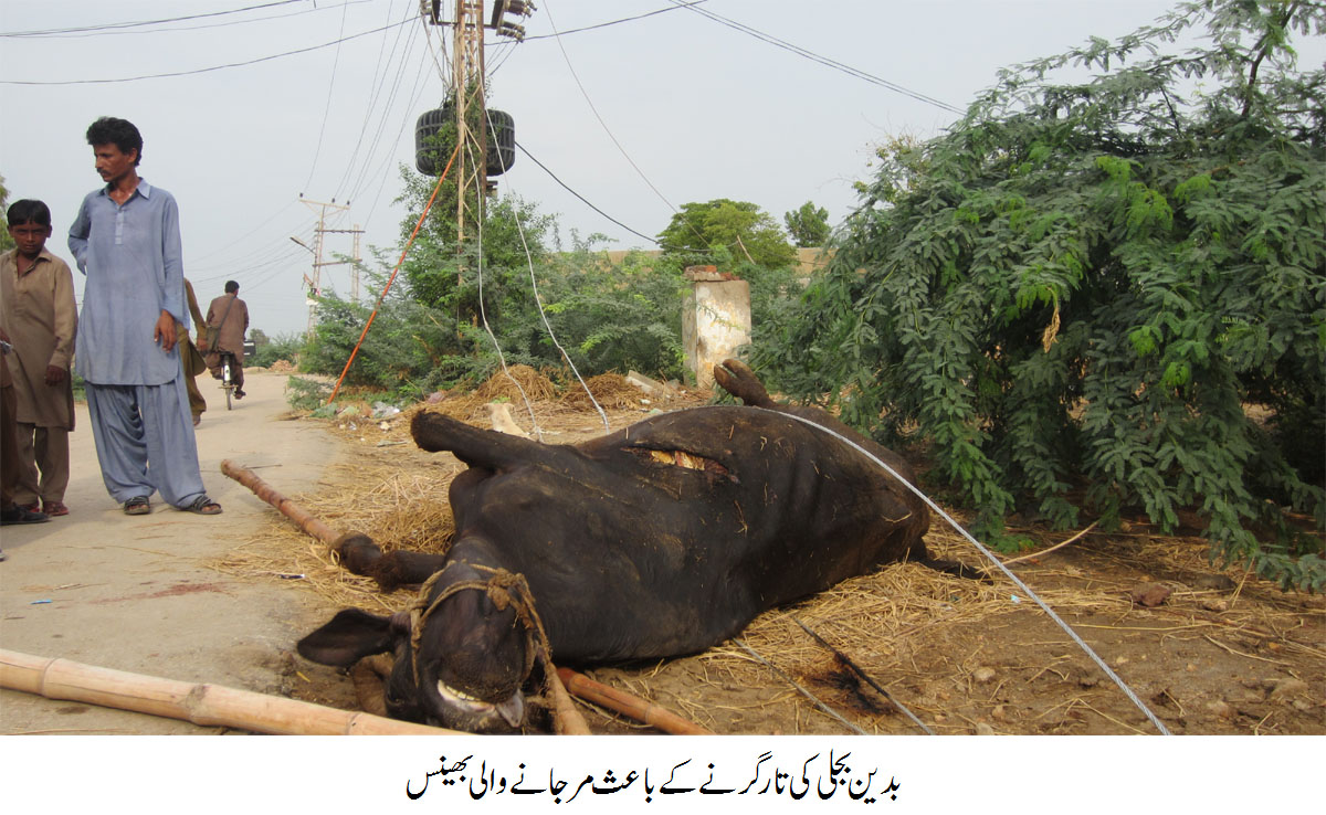 بدین(عمران عباس) کینٹ روڈ بدین میں باڑے پر کھڑی بھینس 11000ہزار وولٹیج کی تار گرنے کے باعث مرگئی، بھینس کے مالک شوکت عالمانی نے میڈیا سے بات کرتے ہوئے بتایا کہ ایک ماہ قبل حیسکو آفیس اور عملے کو اطلاع دی تھی کی تار کمزور ہے اور کسی بھی وقت گر سکتی ہے، لیکن حیسکو والوں کی نااہلی کے باعث آج تار کرنے سے ہماری ڈیڈھ لاکھ کی بھینس مرگی اور ہمیں نقصان اٹھانا پڑا، انہوں نے حیسکو والوں کو الٹیمٹم دیا کہ اگر انہوں نے تاروں کے سسٹم کو درست نہیں کیا تو حیسکو آفیس کا گھیراؤ کرینگے۔