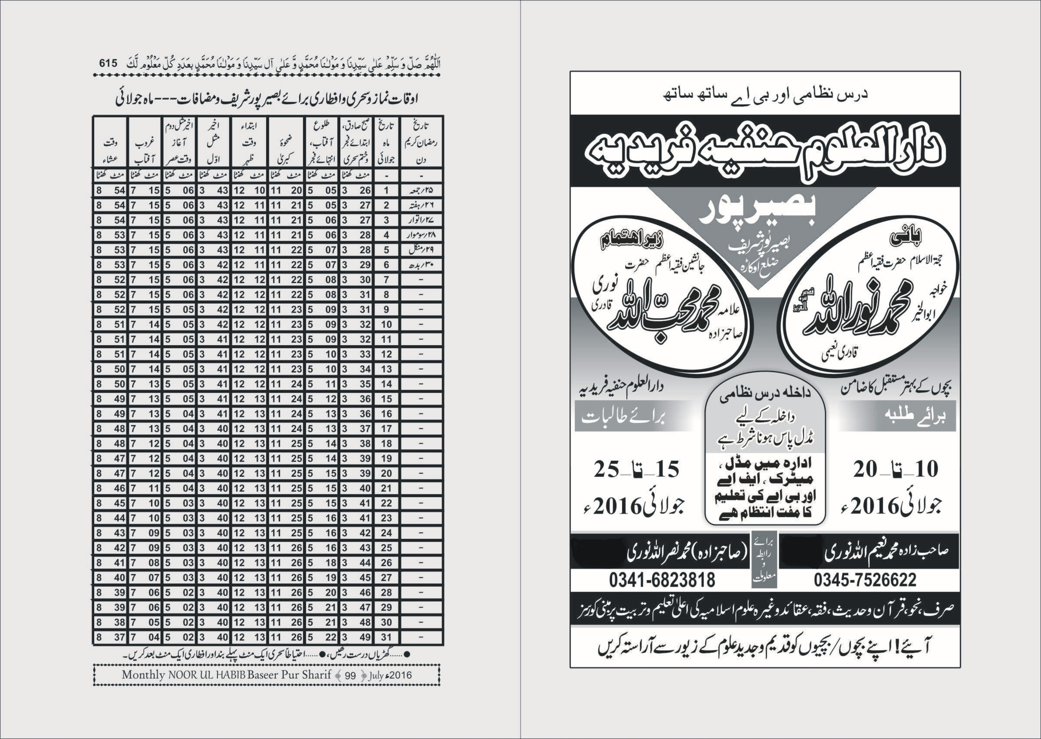 بصیر پور (محمد محی الدین نوری) دارالعلوم حنفیہ فریدیہ میں داخلہ جاری ہے مڈل پاس ہونا شرط ہے۔