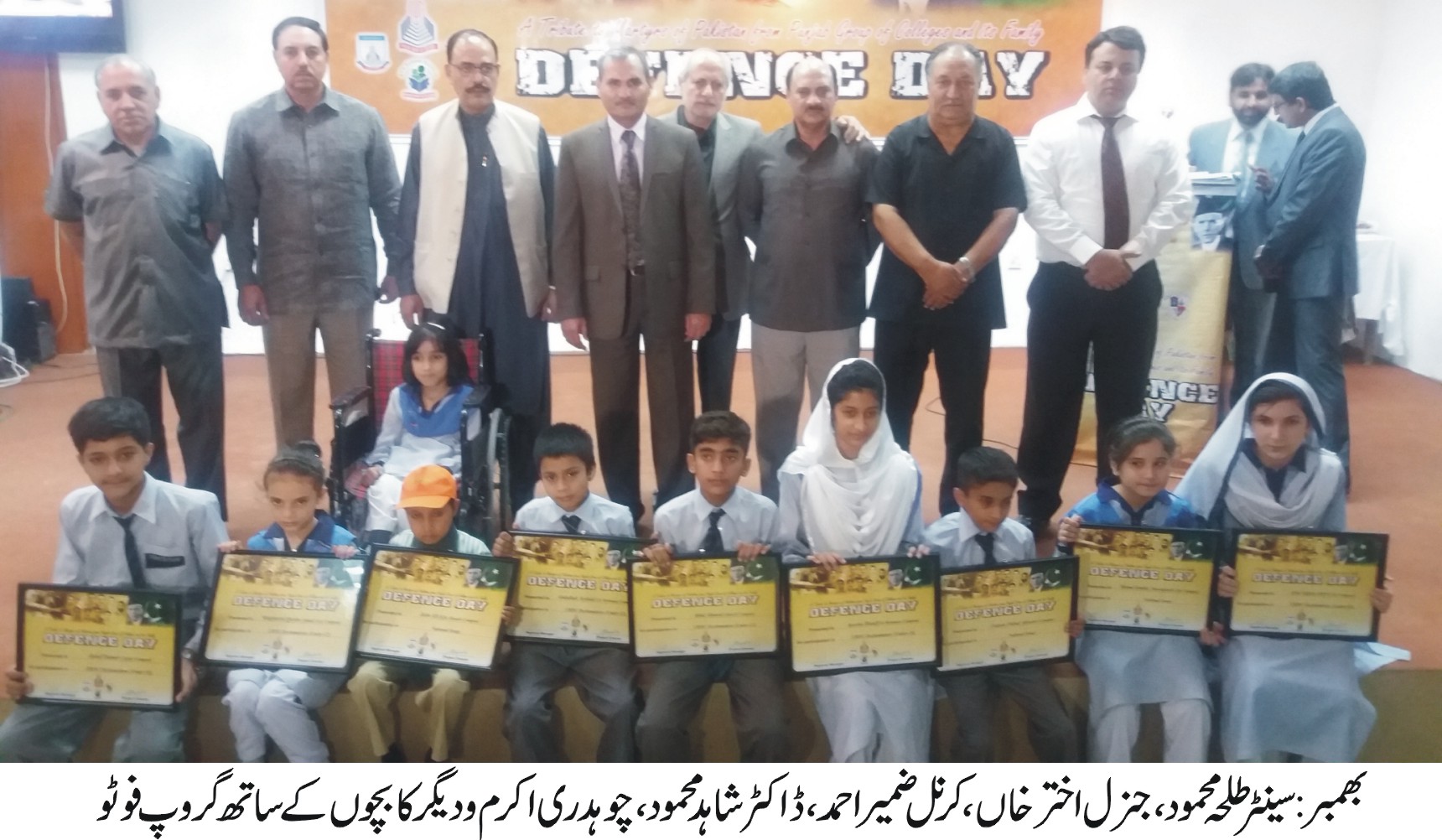 بھمبر(ڈسٹر کٹ رپو رٹر)الائیڈسکول بھمبر کا اعزاز ،دفاع پاکستان کے حوالے سے منعقدہ تقریری اور قومی نغمات کے مقابلوں میں نارتھ ریجن میں ٹاپ پوزیشن حاصل کیں۔تفصیلات کے مطابق الائیڈسکولز ،پنجاب گروپ آگ کالجز اور جنگ کلچرل گروپ کے زیر اہتمام الائیڈ سکولز،ایفا سکولز،اور ریسورس اکیڈمیہ ،نارتھ ریجن کے بچوں میں تقریری اور قومی نغمات کا مقابلے ہوئے جس میں آزاد کشمیر ،گلگیت ،خیبرپختون خواہ ، اسلام آباد ،چکوال ،جہلم ، سرائے عالمگیر، اٹک ، ڈی جی خان کے بچوں نے حصہ لیا، 165 سکولوں کے بچوں اور بچیوں کے درمیان سخت مقابلہ ہوا، ججز کے لئے فیصلہ انتہائی مشکل تھا، جس میں ملائیکہ ناصر بٹ اور فیضان فیصل بٹ نے ٹاپ سکس میں پوزیشن حاصل کی ۔جس میں 12 سال سے کم عمر کے بچوں میں پہلی جبکہ سولہ سال سے کم عمر کے بچوں میں دوسری پوزیشن حاصل کی ، اس موقع پر جنرل اختر خان مہمان خصوصی تھے جبکہ سینٹر طلحہ محمود ،ڈاکٹر شاہد محمود، کرنل ضمیر، سابق ڈی جی نادرہ کرنل محمداقبال، چوہدری محمد اکرم ڈائیریکٹر پنجاب کالجز، عثمان اکبر،بھی موجود تھے، اس موقع پر سینٹر طلحہ نے الائیڈ سکولز انتظامیہ ،ایفا سکولز اور پنجاب کالجز کا شکریہ ادا کرتے ہوئے کہا کہ یہ پروگرام میری زندگی کا خوبصورت ترین پروگرام ہے اور آج بچوں کے جذبوں کو دیکھ کر مجھے یقین ہو گیا ہے کہ دنیا کی کوئی بھی قوم ہمارے ان بچوں کے جذبوں کو شکست نہیں دے سکتی۔ اس موقع پر جنرل اختر خان نے کہا کہ آج ملائکہ ناصر کا جذبہ مجھے رولا گیا ہے اس نے جس جذبے سے شہیدوں کو خراج تحسین پیش کیا ہے وہ تعریف کے لائق ہے اور فیضان نے بجلی بند ہونے کے باوجود اپنے نغمے کو جاری رکھا یہ بات اس بات کی غمازی کرتی ہے کہ کوئی بھی رکاوٹ ہمارے بچوں کے حوصلوں کو پست نہیں کر سکتی، انھوں نے الائیڈسکول ، ایفا سکولز اور ریسورس اکیڈمیہ کے بچوں کی تعریف کی اور زندگی میں اس حوصلے اور جذبے کے ساتھ آگے بڑھنے کا درس دیتے ہو کہا کہ ہمیں دشمن کے خلاف ہر محاذ پر لٹرنا ہے اس لئے ہر طرح سے تیاری ہماری زندگی کا مشن ہو نا چاہئے، ملائکہ ناصر کی تعریف تمام مقررین نے کی اور خصوصی طور پر ڈاکٹر شاہد محمود ڈائیریکٹرپنجاب گروپ آف کالجز نے دس ہزار روپے کا انعام بھی دیا۔