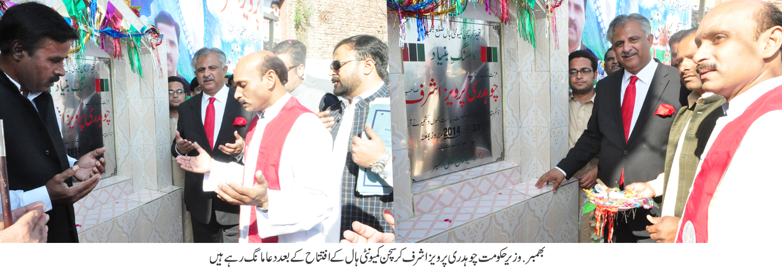 بھمبر: وزیر حکومت چوہدری پرویز اشرف کرسچن کمیونٹی ہال کا افتتاح کے بعد دعا مانگ رہے ہیں۔