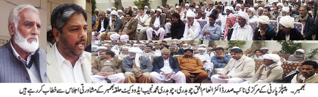 بھمبر ( ڈسٹرکٹ رپورٹر) پیپلز پارٹی کے مرکزی نائب صدر ڈاکٹرانعام الحق چوہدری نے بھمبر سے قانون ساز اسمبلی کا الیکشن لڑ نے کا اعلان کر دیا تفصیلات کے مطابق پاکستان پیپلزپارٹی آزاد کشمیر کے مرکزی نائب صدر ڈا کٹر انعا م الحق چو ہدر ی نے حلقہ ایل اے7بھمبر سے قا نو ن ساز اسمبلی کا الیکشن لڑ نے کا اعلان کر دیا اس با ت کا اعلا ن انہو ں نے گز شتہ رو زز میندا رہ ہا وس بھمبر میں حلقہ ایل اے 7 بھمبر کے معززین کے الیکشن کے حوا لے سے منعقد ہ مشا ورتی اجلا س سے کیا مشا رتی اجلا س سے خطا ب کر تے ہو ئے ڈا کٹر انعا م الحق نے کہا کہ قانو ن سا ز اسمبلی میں آمد ہ الیکشن میں پو ری تیا ری کے سا تھ حصہ لو ں گا گز شتہ 10سا لو ں سے حلقہ بھمبر کے عو ام کے سا تھ مسلسل زیا دتی ہو رہی ہے عو امی نما ئند ے انکے حقوق کا تحفظ کر نے اور انکے مسا ئل حل کر نے میں مکمل طو ر پر نا کا م ہو چکے ہیںانہو ں نے کہا کہ چو ہدر ی صحبت علی مر حو م کو چا ہنے وا لے ہیں ہمارا جینا مرنا چو ہدر ی صحبت علی خا ند ا ن کے ساتھ ہے خا ند ان کے افرا د جتنے متحد اور منظم ہو نگے اور با ہمی مشا ورت سے الیکشن لڑ یں گے کا میا بی انکا مقدر ہو گی مشاورتی اجلا س سے چو ہدر ی افضل پنڈ ی جہونجہ ،ما سٹر منظو ر حسین،چو ہدر ی عبدا لغنی ،چو ہدر ی محمد اکر م مقد م سمیت دیگر نے بھی خطا ب کیا جبکہ مشاروتی اجلا س کی صدا رت سیکر ٹر ی چو ہدر ی محمد اعظم نے کی مشاورتی اجلا س میں حلقہ بھمبر سے نما ئندو ں نے بڑ ی تعداد میں شر کت کی ۔