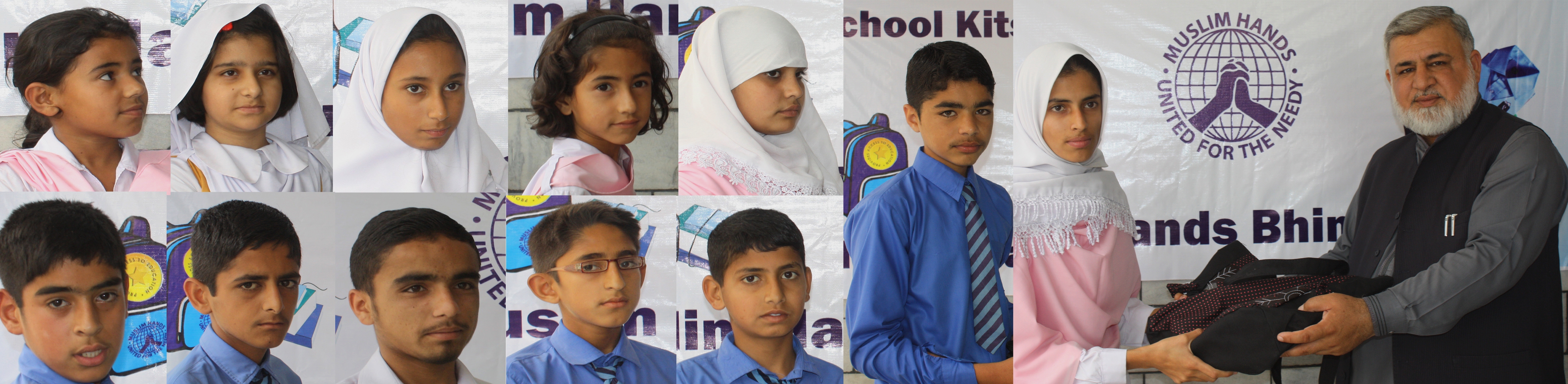 بھمبر: مسلم ہینڈز کے منٹری مینیجر صاحب زادہ سید ضیاالنور، مسلم ہینڈزسکول بھمبر کے آرفن بچوں میں سکول کٹ کے پیکیج تقسیم کر رہے ہیں۔