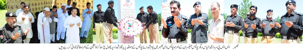 بھمبر (ڈسٹرکٹ رپورٹر) شہدا ء پولیس ہمارا فخر اور سرمایہ ہیں ،ان کو یاد کر کے دل کو سکون اور راحت ملتی ہے پاک فوج سرحدوں پر جبکہ پولیس اندرورنی دشمنوں سے حفاظت کی ذمہ دار ہے۔ پو لیس کا یک یک سپاہی ہمارا ہیرو ہے ان خیالات کا اظہار SSP بھمبر سردار الیاس خان نے بسلسلہ 14 اگست شہداء پولیس کی یاد میں منائے جانے والے دن کے موقع پر خطاب کرتے ہوئے کیا انہوں نے انھوں نے آئی جی پولیس آزاد کشمیر بشیر احمد میمن کا شکریہ ادا کرتے ہوئے کہا کہ آج کی تقریب خصوصاََ ان کے حکم کے مطابق منعقد کی جا رہی ہے انھوں نے شہداء کے ورثا کے لئے نقد دس دس ہزار روپے اور مٹھائی کا تحفہ بھی بجھاہے ،ان نے اس موقع پر شہداء پولیس کے ورثا کو آئی جی پولیس کی جانب سے بھیجے گئے تحفے دیتے ہوئے کہا کہ ہمارا ادارہ شہداء کے ورثا کی قدر کرتا ہے اور ان کی ہر وقت مدد کرنے کو بھی تیار ہے، شہدا کے ورثا اپنے آپ کو تنہا نہ سمجھیں ہم ہر مشکل کی گھڑی میں ان کے ساتھ ہیں، اور شہداء نے اپنی جان کیبازی لگا کر اس پاک ملک کے دشمنوں کو مار بھگایا ہے ان کی اس قربانی پر پوری قوم فخر کرتی ہے۔پروگرام کا باقاعدہ آغاز قرآن پاک کی تلاوت سے ہوا ، پولیس کے چاک و چوبند دستے نے مہمان خصوصی کو سلامی پیش کی اور شہداء کی یادگار پر پھولوں کی چادر چڑھائی گئی، اس موقع پر DSP ٹریفک پولیس ڈویژنل مظہر حسین چوہدری ، ایکسٹرااسسٹنٹ کمشنر راجہ ایاز خان، PDSP راجہ اشفاق خان، DSP چوہدری امین ،SHO حاجی سکندر اعظم ، SHO چوہدری منیر حسین MMPI چوہدری شبیر احمد ، انسپیکڑخلیل ،اور شہداء کے ورثا،اور پولیس کے دیگر اہلکاران نے بھی تقریب میں شرکت کی۔