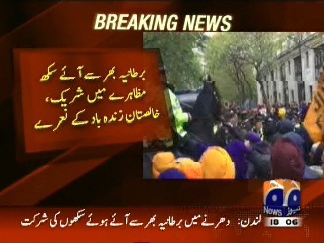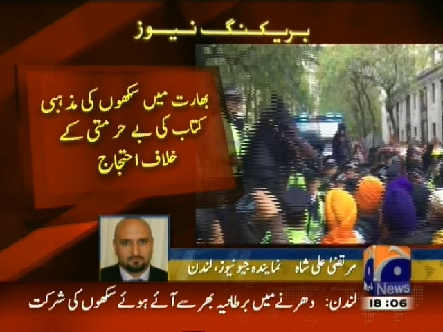برطانیہ میں بھارتی ہائی کمیشن کے سامنے سکھوں کے احتجاجی مظاہرے میں بد نظمی، برطانیہ بھر سے آئے سکھ مظاہرے میں شریک، خالصتان زندہ باد کے نعرے، بھارت میں سکھوں کی مذہبی کتاب کی بے حرمتی کے خلاف احتجاج۔