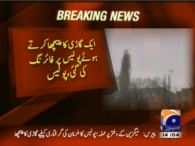 پیرس: چارلی ہیبڈو حملے کے ملزمان کی تلاش، شمال مشرقی پیرس میں پولیس آپریشن، ایک گاڑی کا پیچھا کرتے ہوئے پولیس پر فائرنگ کی گئی، فائرنگ کے واقعے میں دو افراد شدید زخمی ہو گئے، پولیس ذرائع۔