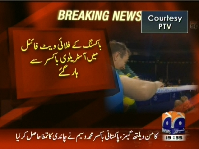 کامن ویلتھ گیمز، باکسر محمد وسیم نے پاکستان کے لیے چاندی کا تمغہ جیت لیا، باکسنگ کے فلائی ویٹ فائنل میں آسڑیلوی باکسر سے ہار گئے۔