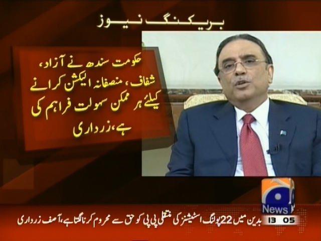 81یونین کونسلز میں پولنگ ملتوی کرنا پیپلز پارٹی کو اسکے حق سے محروم کرنا ہے ، زرداری، بدین میں عین وقت پر 22 پولنگ اسٹیشنز کی منتقلی پیپلز پارٹی کو جائز حق سے محروم کرنا لگتا ہے، حکومت سندھ نے آزاد، شفاف، منصفانہ الیکشن کرانے کیلئے ہر ممکن سہولت فراہم کی، لگتا ہے الیکشن کمیشن کی دوڑیں غیر متعلقہ حلقوں کی جانب سے ہلائی جارہی ہیں، زرداری۔