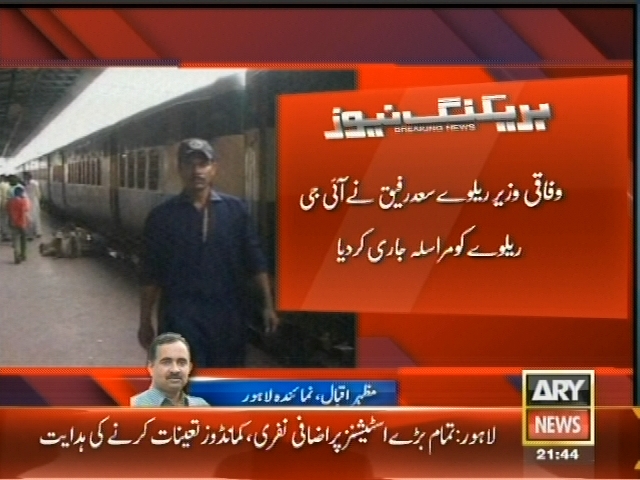لاہور: ملک کے تمام ریلوے اسٹیشنز پر سیکیورٹی ہائی الرٹ، تمام بڑے اسٹیشنز پر اضافی نفری، کمانڈوز تعینات کرنے کی ہدایت، وفاقی وزیر ریلوے سعد رفیق نے آئی جی ریلوے کو مراسلہ جاری کر دیا۔