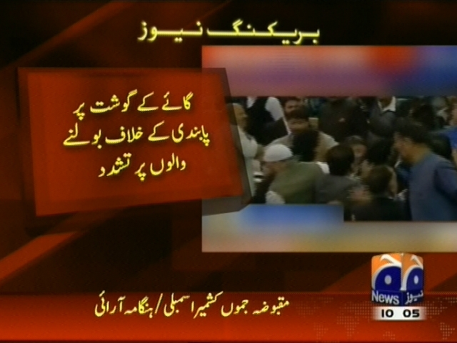 گائے ذبح کرنے پر پابندی کے معاملے پر مقبوضہ جموں کشمیر اسمبلی میں پھر ہنگامہ، گائے کے گوشت پر پابندی کے خلاف بولنے والوں پر تشدد، حکمران بی جے پی اراکین کی غنڈہ گردی۔