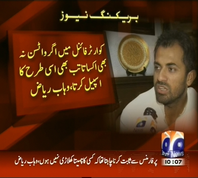 کرکٹ ورلڈ کپ میرے لیے اب یا کبھی نہیں کی حیثیت رکھتا تھا، وہاب ریاض، پرفارمنس سے ثابت کرنا چاہتا تھا کہ کسی کا چہیتا کھلاڑی نہیں ہوں، کوارٹر فائنل میں اگر واٹسن نہ بھی اکساتا تب بھی اسی طرح کا اسپیل کرتا، وہاب ریاض۔
