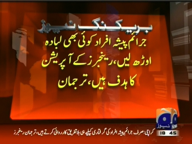جرائم پیشہ افراد کوئی بھی لبادہ اوڑھ لیں، رینجرز کے اپریشن کا ہدف ہیں، الزمات کا مقصد ملکی سلامتی کیلئے جاری اپریشن کو نقصان پہنچانا ہے، ترجمان رینجرز۔