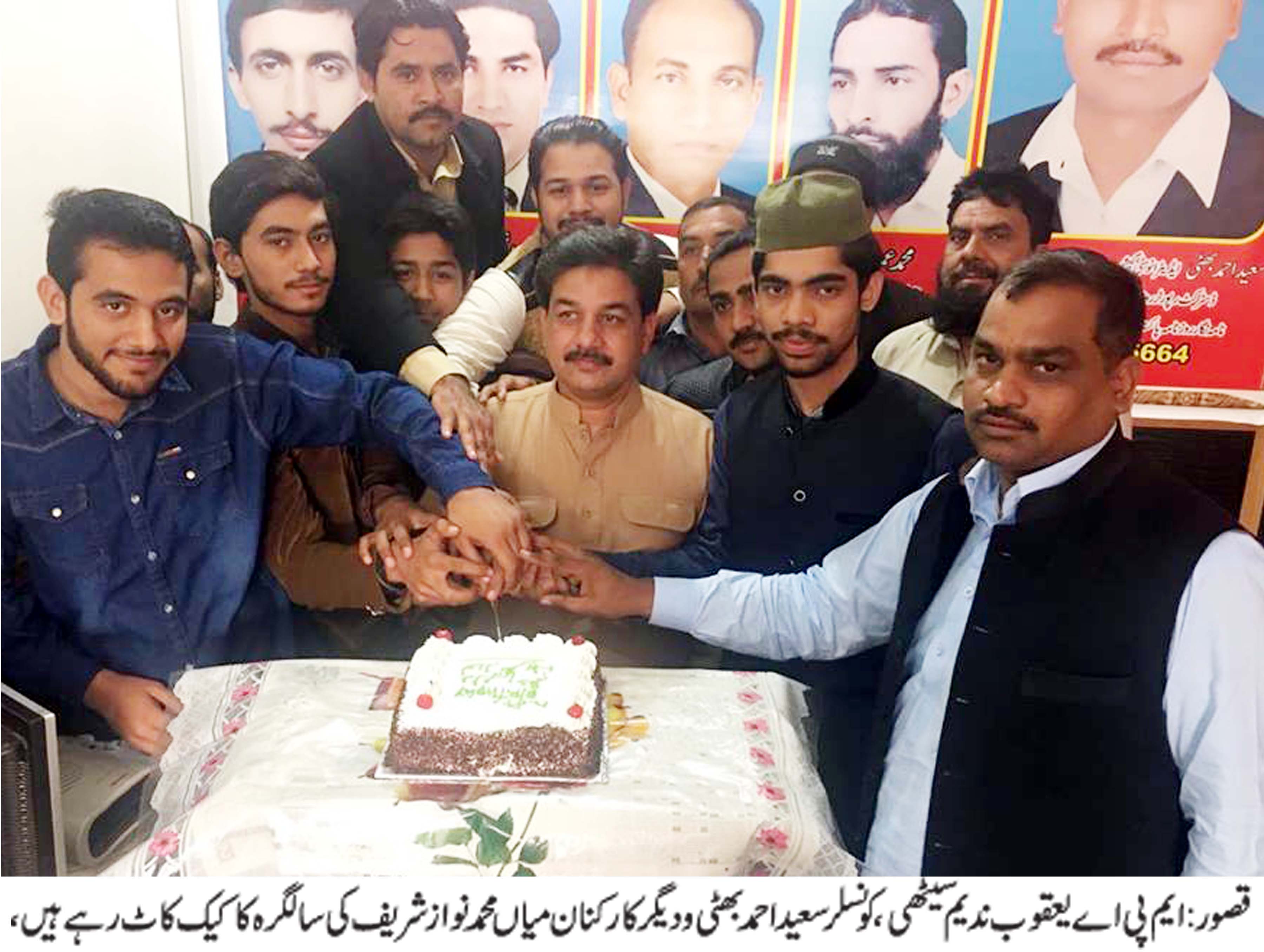قصور (بیورو رپورٹ) ایم پی اے یعقوب ندیم سیٹھی و دیگر کارکنوں نے سعید احمد بھٹی کی رہائش گاہ موضع کھارا میں وزیر اعظم پاکستان میاں محمد نواز شریف کی 67ویں سالگرہ اور بابائے قوم قائد اعظم محمد علی جناح کی 140واں یوم پیدائش کا کیک کاٹا، اس موقع پر سعید احمد بھٹی (کونسلر) مظفر خاں، غلام علی عرفانی، چوہدری عثمان علی،کرامت علی ،مہر محمد آصف،ارسلان احمد و دیگر کارکنان بھی موجود تھے،کیک کاٹنے کی تقریب میں ایم پی اے یعقوب ندیم سیٹھی اورنو منتخب کونسلر سعید احمد بھٹی نے اپنے مشترکہ بیان میں کہا کہ میاں محمد نواز شریف پہلی مرتبہ 6نومبر 1990سے لیکر 18اپریل تک وزیر اعظم رہے دوسری بار 17فروری1997سے لیکر 12 اکتوبر 1999تک اقتدار پر فائز رہے جبکہ 11مئی 2013کے عام انتخابات میں شاندار کامیابی کے بعد ایک بار پھر انہیں وزیر اعظم پاکستان کے طور پر منتخب ہونے کا شرف حاصل ہوا ہے،انہوں نے مزید کہا کہ مسلم لیگ ن کی حکومت وزیر اعظم پاکستان میاں محمد نواز شریف اور وزیر اعلیٰ پنجاب میاں محمد شہباز شریف کی قیادت میں عوامی مسائل حل کر رہی ہے ،ملک بھر میں ترقیاتی کام جاری ہیں اور ان ترقیاتی کاموں کی رفتار کو مزید تیز اور بہتر کیا جا رہا ہے تاکہ عوام کا معیار زندگی بلند ہو سکے ۔