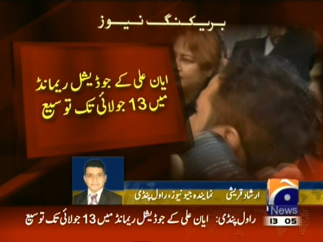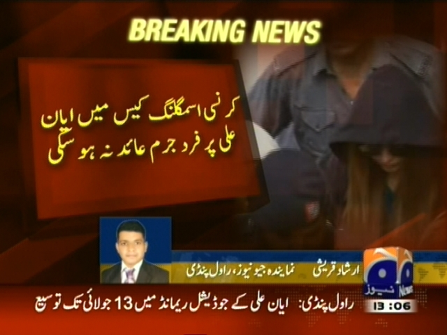 کرنسی اسمگلنگ کیس، ماڈل ایان علی پر فرد جرم عائد کرنے کے لئے 13 جولائی مقرر، کرنسی اسمگلنگ کیس میں ایان علی پر فرد جرم عائد نہ ہو سکی، ایان علی کے جوڈیشل ریمانڈ میں 13 جولائی تک توسع۔