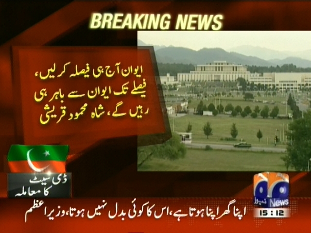 ڈی سیٹنگ کا معاملہ حل نہ ہونے پر پی ٹی آئی ارکان کا قومی اسمبلی سے واک آئوٹ، ایوان آج ہی فیصلہ کر لیں، فیصلے تک ایون سے باہر ہی رہیں گے، شاہ محمود قریشی، اسپیکر قومی اسمبلی نے معاملے کے حل کیلئے پارلیمانی لیڈرز کو چیمبر میں بلا لیا۔