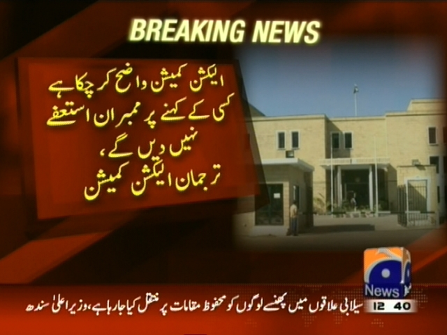 الیکشن کمیشن نے پیپلز پارٹی کا ممبران الیکشن کمیشن کے استعفوں کا مطالبہ مسترد کر دیا، الیکشن کمیشن واضح کر چکا ہے کسی کے کہنے پر ممبران استعفے نہیں دیں گے، الیکشن کمشین ممبران اپنی مدت پوری کریں گے، حکام الیکشن کمیشن۔