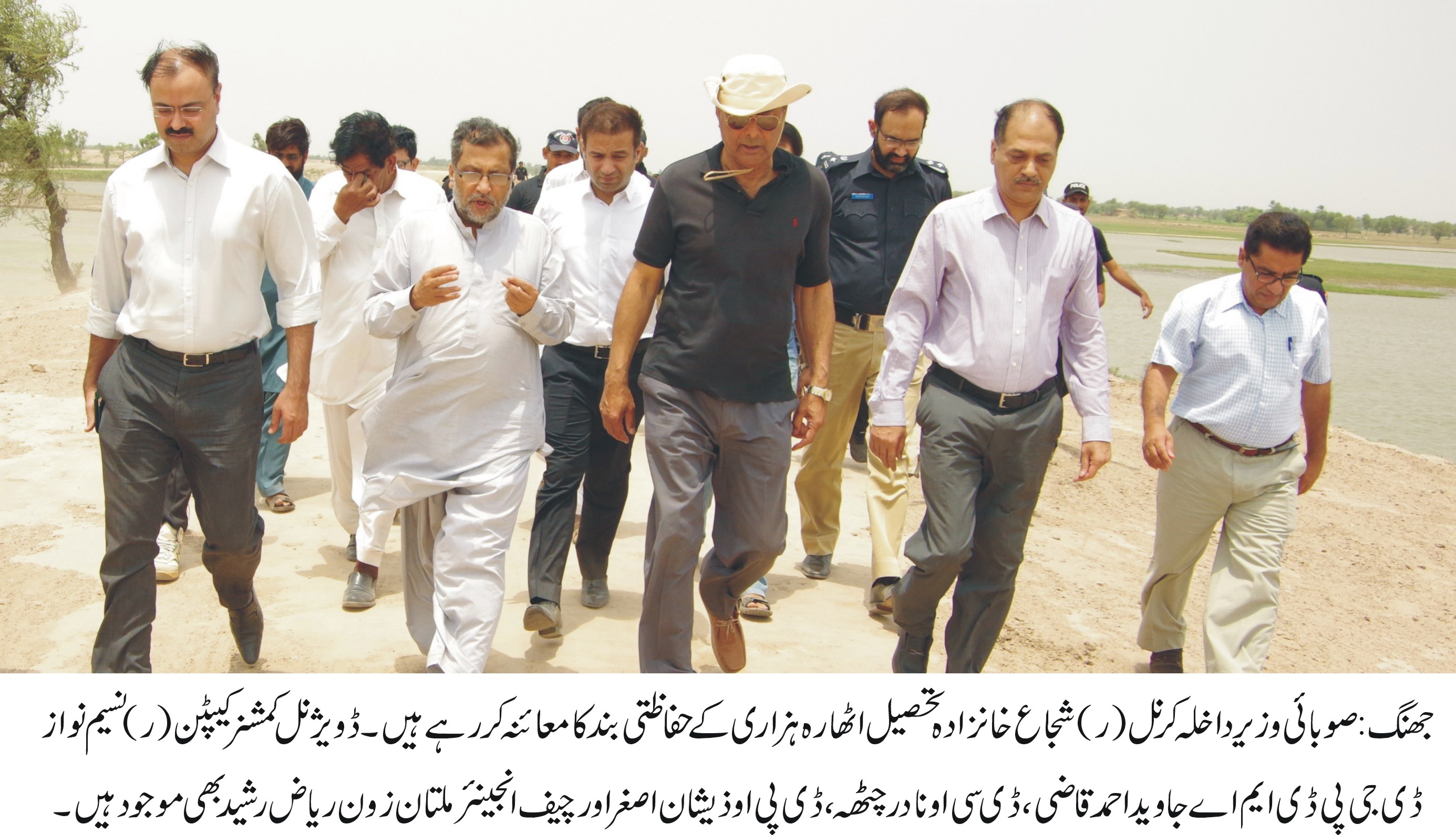 جھنگ: صوبائی وزیر داخلہ کرنل (ر) شجاع خانزادہ نے کہا ہے کہ وزیر اعلیٰ پنجاب محمد شہباز شریف کی ہدایت پر متوقع سیلاب سے نمٹنے کیلئے تمام تر اقدامات پیشگی بنیادوں پر مکمل کئے جا رہے ہیں اس سلسلہ میںضلعی انتظامیہ اور محکمہ انہار سمیت دیگرتمام متعلقہ محکمے آپس میںمسلسل رابطہ رکھیں اور حفاظتی بندوں کومزید مضبوط بنانے کا کام فوری طور پر مکمل کر لیا جائے تاکہ کسی بھی جانی و مالی نقصان سے بچا جا سکے۔ انہوںنے یہ با ت ضلع جھنگ کے دورہ کے دوران تریموں ہیڈ ورکس کے مقام پرمنعقدہ بریفنگ کے بعد کوٹ خیرا اور تحصیل اٹھارہ ہزاری و دیگر حفاظتی بندوں کا معائنہ کرتے ہوئے کہی۔ڈویژنل کمشنر کیپٹن (ر) نسیم نواز،ڈائریکٹر جنرل پنجاب ڈیزاسٹر مینجمنٹ اتھارٹی احمد جاوید قاضی،ڈی سی او نادر چٹھہ،ڈی پی او ذیشان اصغر، چیف انجینئر اریگیشن ملتان زون ریاض رشید ، اسسٹنٹ کمشنرز اور محکمہ صحت ،لائیو سٹاک و دیگر محکموں کے افسران بھی اس موقع پر موجود تھے۔صوبائی وزیر داخلہ نے حفاظتی بندوں کے مختلف حصوں کا معائنہ کیا اور ہدایت کی کہ کسی بھی حصے میں تجاوزات نظر نہیں آنی چاہیں۔