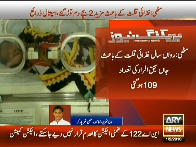 مٹھی : غذائی قلت کے باعث مزید 2 بچے دم توڑ گئے، رواں سال غذائی قلت کے باعث جاں بحق افراد کی تعداد 109 ہو گئی۔