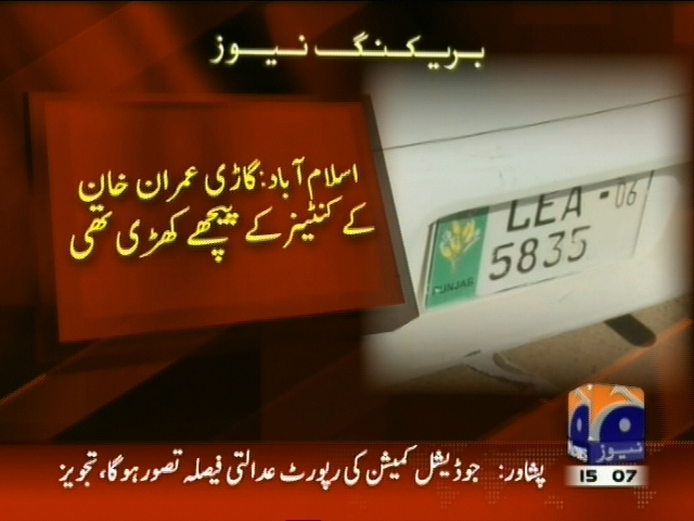 اسلام آباد: آزادی مارچ کے دھرنے میں گاڑی میں رکھی پرفیوم کی بوتل پھٹنے سے دھماکا، دھماکے سے گاڑی کے شیشے ٹوٹ گئے، گاڑی عمران خان کے کنٹینر کے پیچھے کھڑی تھی۔