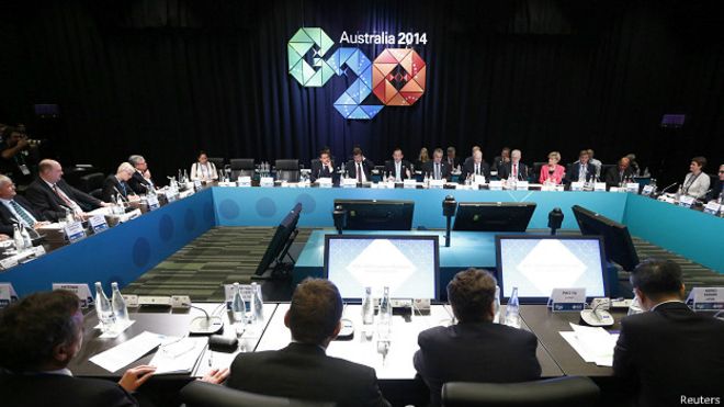 جی 20 سربراہی اجلاس سے پیشتر صدر پوتن نے کہا کہ امریکہ اور یورپی یونین کی جانب سے یوکرین کے حوالے روس پر لگائی جانے والی پابندیوں سے صرف روس کو ہی نہیں بلکہ عالمی معیشت کو بھی نقصان پہنچے گا۔ آسٹریلوی وزیر اعظم ٹونی ایبٹ نے کہا ہے کہ ’عالمی رہنما اس سربراہی اجلاس کا استعمال روزگار کے مواقع پیدا کرنے ٹیکس کی چوری کرنے والوں کی نشاندہی کرنے اور عالمی معیشت کو مضبوط بنانے کے لیے کریں گے۔‘