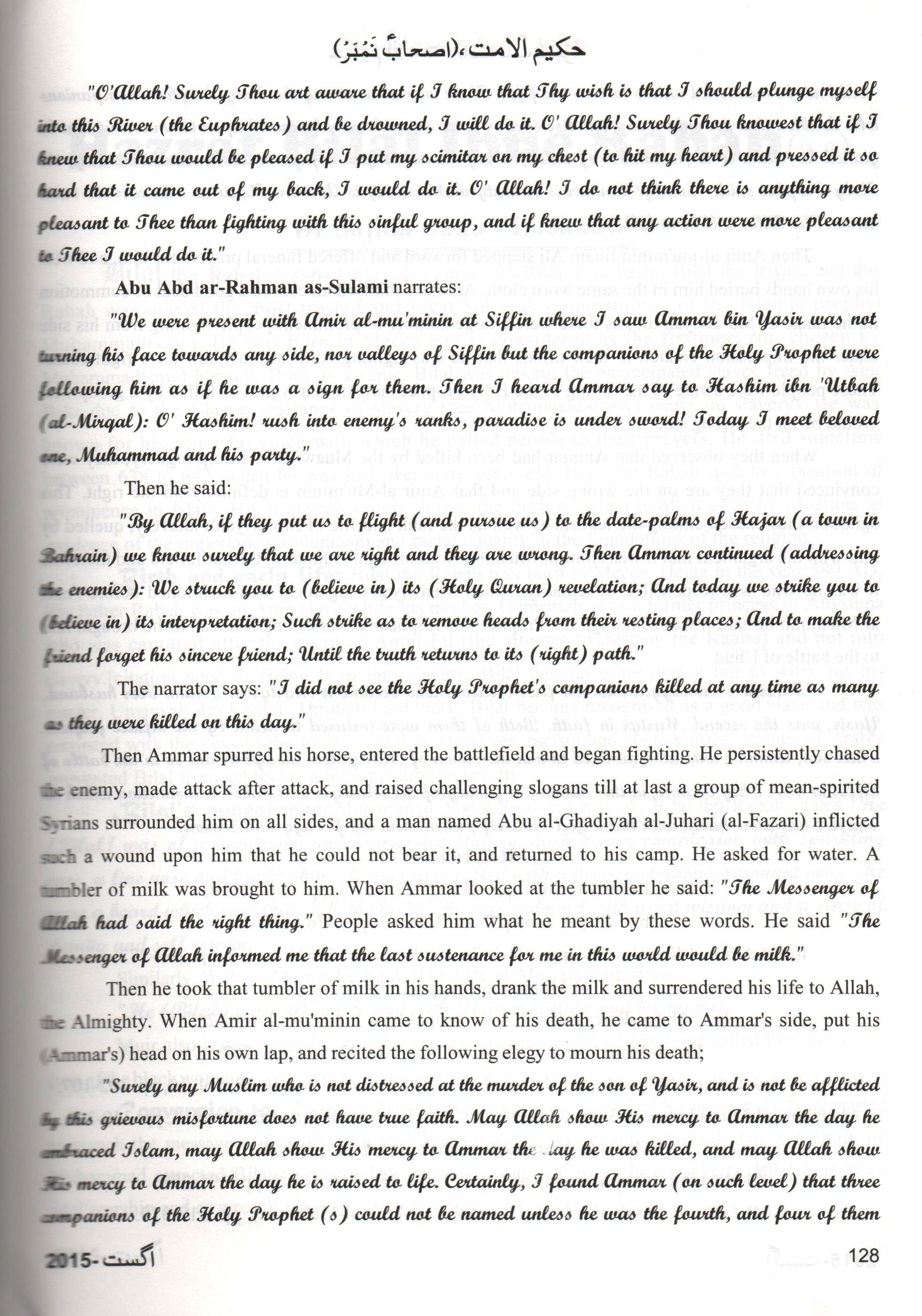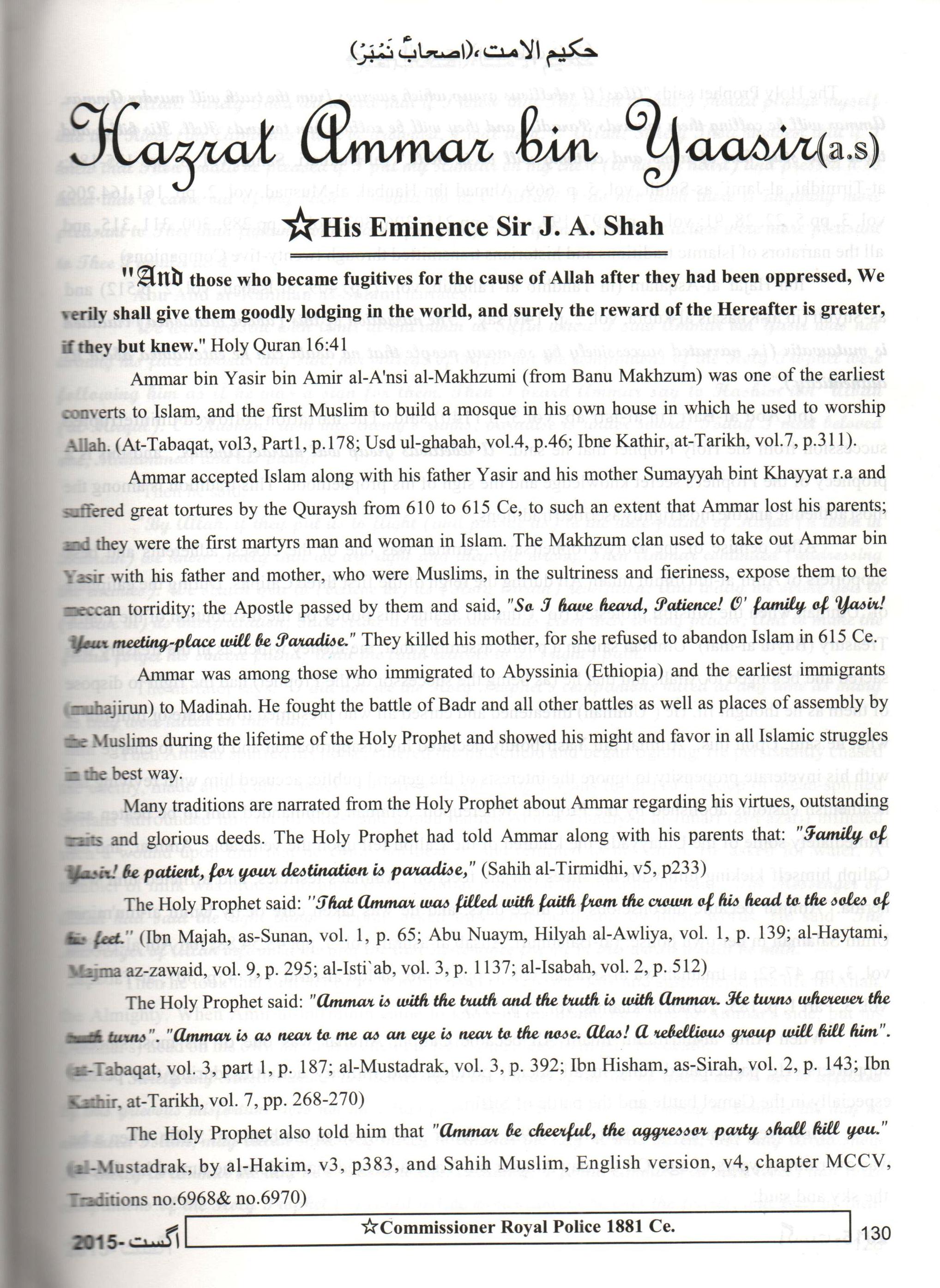 جرنیل حیدر کرار سیدنا عمار بن یاسر از سر جے اے شاہ۔