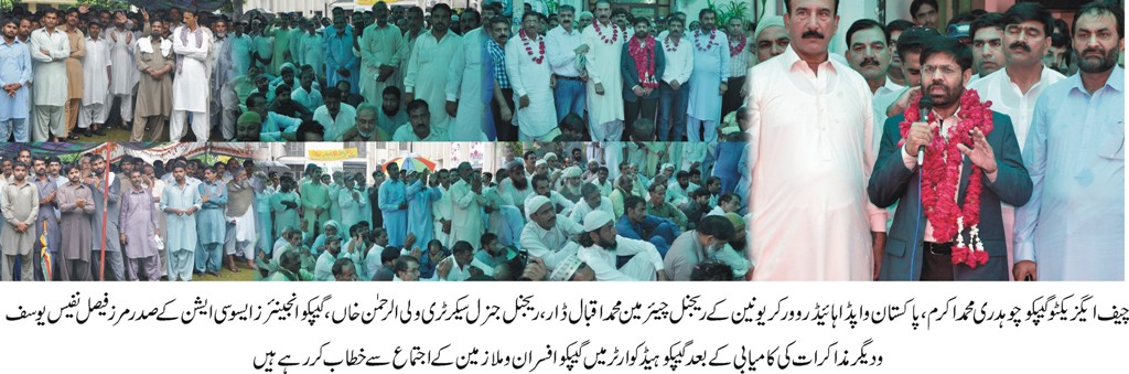 وزیرآباد (عقیل احمد خان لودھی) گیپکو واپڈانتظامیہ اور ہڑتالی ملازمین کے درمیان مذاکرات کامیاب،ملازمین نے ہڑتال ختم کر دی۔ گیپکو میں پرائیویٹ چیف ایگزیکٹو کی تعیناتی کے ردعمل کے طور پر گیپکو لیبر یونین اور آفیسرز ایسوسی ایشن نے ہڑتال کر رکھی تھی جس کے لئے گیپکو انتظامیہ کی کوششوں سے مذاکرات کے مختلف دور چلے تا ہم ہڑتالوں کے دوران میٹر ریڈنگ اور بلنگ نہ ہونے کی وجہ سے گیپکو ریونیو کے نقصانات اور عوامی مشکلات کے پیش نظر گذشتہ روز گیپکو آفیسرز ایسوسی ایشن اور پاکستان واپڈا ہائیڈرو ورکر یونین اور گیپکو انتظامیہ کے مابین جامع اور طویل مذاکرات ہوئے۔ جس میں پرائیویٹ چیف ایگزیکٹو کی تعیناتی روکنے سمیت یونین کے 21نکاتی ایجنڈے پر بات چیت کی گئی اور باہمی اتفاق رائے اور رضامندی سے گروپوں نے ہڑتال ختم کرنے کا اعلان کیا۔ گیپکو انتظامیہ کی نمائندگی کرتے ہوئے اس موقع پر چیف ایگزیکٹو چوہدری محمد اکرم نے گیپکو ملازمین و افسران سے خطاب کرتے ہوئے کہا کہ گیپکو کی ترقی کیلئے گیپکو انتظامیہ و کارکناں کسی قربانی سے دریغ نہیں کریں گے اورہڑتالوں کے دوران ہمارا جو وقت ضائع ہوا ہے اور نقصان ہوا ہے اسکو پورا کرنے کیلئے اتنے دن ڈبل کام کر کے اس نقصان کو پورا کریں اور کمپنی کا عزت و وقار بحال کرتے ہوئے اسے نمبرون کی پوزیشن پر برقرار رکھیں گے ۔ اس موقع پر پاکستان واپڈا ہائیڈرو ورکرز یونین کے ریجنل چیئرمین محمد اقبال ڈار، ریجنل جنرل سیکرٹری ولی الرحمن خاں، ریجنل ڈپٹی سیکرٹری میاں عطا ء الرحمن اورگیپکو انجینئرز ایسوسی ایشن کے صدر مرز فیصل نفیس یوسف نے بھی خطاب کیا ۔ انہوں نے اپنے خطاب میں گیپکو انتظامیہ کے مثبت کردار کو سراہااور انہیں کمپنی کی ترقی و خوشحالی کیلئے اپنے مکمل تعاون کی یقین دہانی کرائی۔