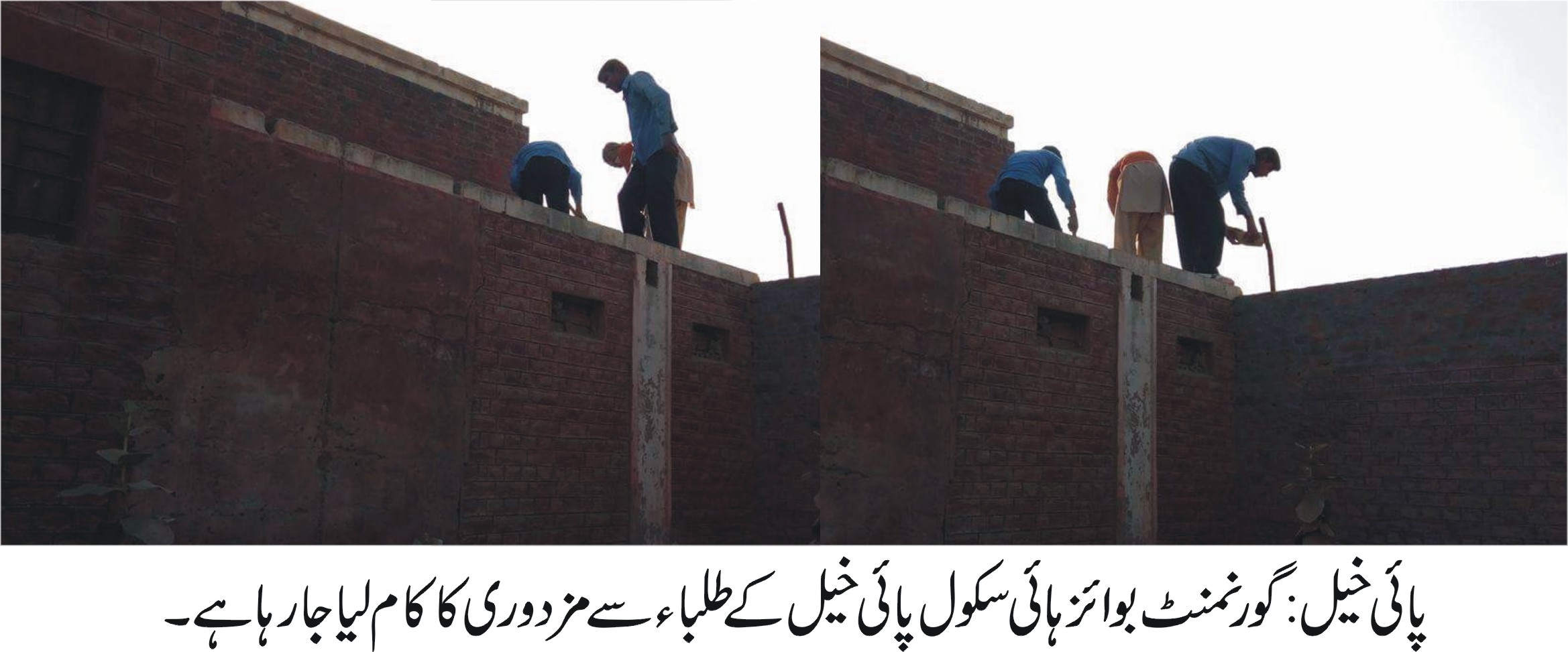 پائی خیل (نامہ نگار) گورنمنٹ بوائز ہائی سکول پائی خیل کے طلباء کو پڑھانے کی بجائے مزدوری پر لگا کر انکا مستقبل تاریک کیا جا رہا ہے۔ تفصیلات کے مطابق گورنمنٹ بوائز ہائی سکول پائی خیل کے رئیس مدرسہ نے زیورِ تعلیم سے آراستہ ہونے کے لئے آنیوالے طلباء کو مزدوری پر لگا دیا جس سے نہ صرف انکا مستقبل تاریک کیا جا رہا ہے بلکہ والدین کے سوہانے خواب چکنا چور کیے جارہے ہیں۔جس کی وجہ سے ہرسال سکول کارزلٹ نہ ہونے کے برابرآتاہے۔عوامی وسماجی حلقوں نے ارباب اختیارسے اصلاح واحوال کا مطالبہ کیا ہے۔