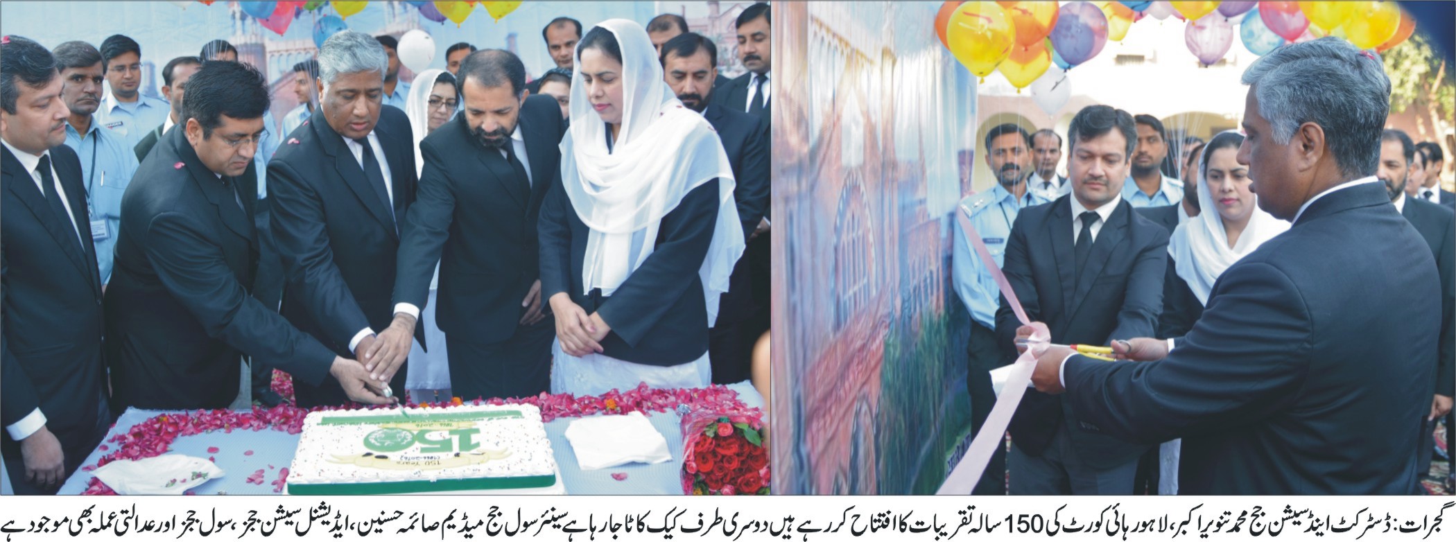 گجرات(جی پی آئی) ضلعی عدلیہ گجرات کے زیر اہتمام لاہور ہائیکورٹ کی 150 سالہ تقریبات کا آغاز کر دیا گیا ہے، اس سلسلے میں منعقدہ پروقار افتتاحی تقریب میں ڈسٹرکٹ اینڈ سیشن جج محمد تنویر اکبر، سینئر سول جج میڈم صائمہ حسنین، ایڈیشنل سیشن ججز ، سول ججز اور عدالتی عملہ نے شرکت کی، اس موقع پر کیک کاٹا گیا اور رنگ برنگے غبارے ہوا میں چھوڑے گئے۔ دریں اثنا ضلعی عدلیہ کی طرف سے لاہور ہائی کورٹ کے قیام کی ڈیڑھ سو سالہ تقریبات کے سلسلے میں پروگرامز کو حتمی شکل دے دی گئی ہے ، شیڈول کے مطابق مورخہ 19نومبر سہ پہر 3بجے “قانون کی حکمرانی کا قیام”کے عنوان سے کانفرنس گورنمنٹ پوسٹ گرایجوایٹ زمیندارہ کالج میں منعقد ہو گی، اتوار 20نومبر کو ظہور الہی اسٹیڈیم میں دوستانہ میچ ہوگا جبکہ 21نومبربروز سوموار صبح ساڑھے 9بجے سکول کے بچوں کو عدالتوں کا دورہ کرایا جائے گا۔