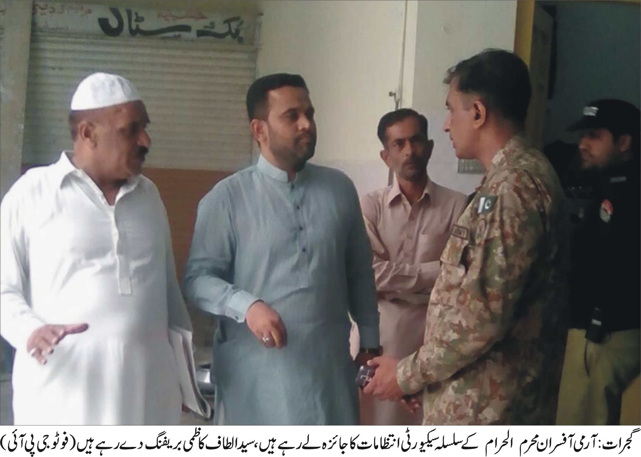 گجرات (جی پی آئی) گزشتہ روز پاکستان آرمی کے افسران نے محرم الحرام کے سلسلہ میں منعقدہ جلوسوں کے روٹس کا معائنہ کیا۔ اس موقع پر ممتاز مذہبی شخصیت سید الطاف عباس کاظمی اور سید مظہر شاہ’ خادم علی خادم’ نے انکا استقبال کیا۔ اور انہیں گجرات میں محرم الحرام کی صورتحال کے حوالے سے بریفنگ دی ۔ پاکستان آرمی کے میجر شعیب نے تمام انتظامات پر اطمینان کا اظہار کیا اور کہا کہ محرم الحرام کے دوران بھر پور حفاظتی انتظامات کئے جائیں گے اور پاکستان آرمی انتظامیہ کے ساتھ بھر پور تعاون کرے گی۔ انہوں نے حسینیہ ٹرسٹ گجرات کا بھی دورہ کیا جہاں پر انہیں حفاظتی انتظامات کے بارے میں بریفنگ دی گئی۔ اس موقع پر تمام شرکاء نے انتظامات کے حوالے سے بھی انتظامیہ کو سراہا۔
