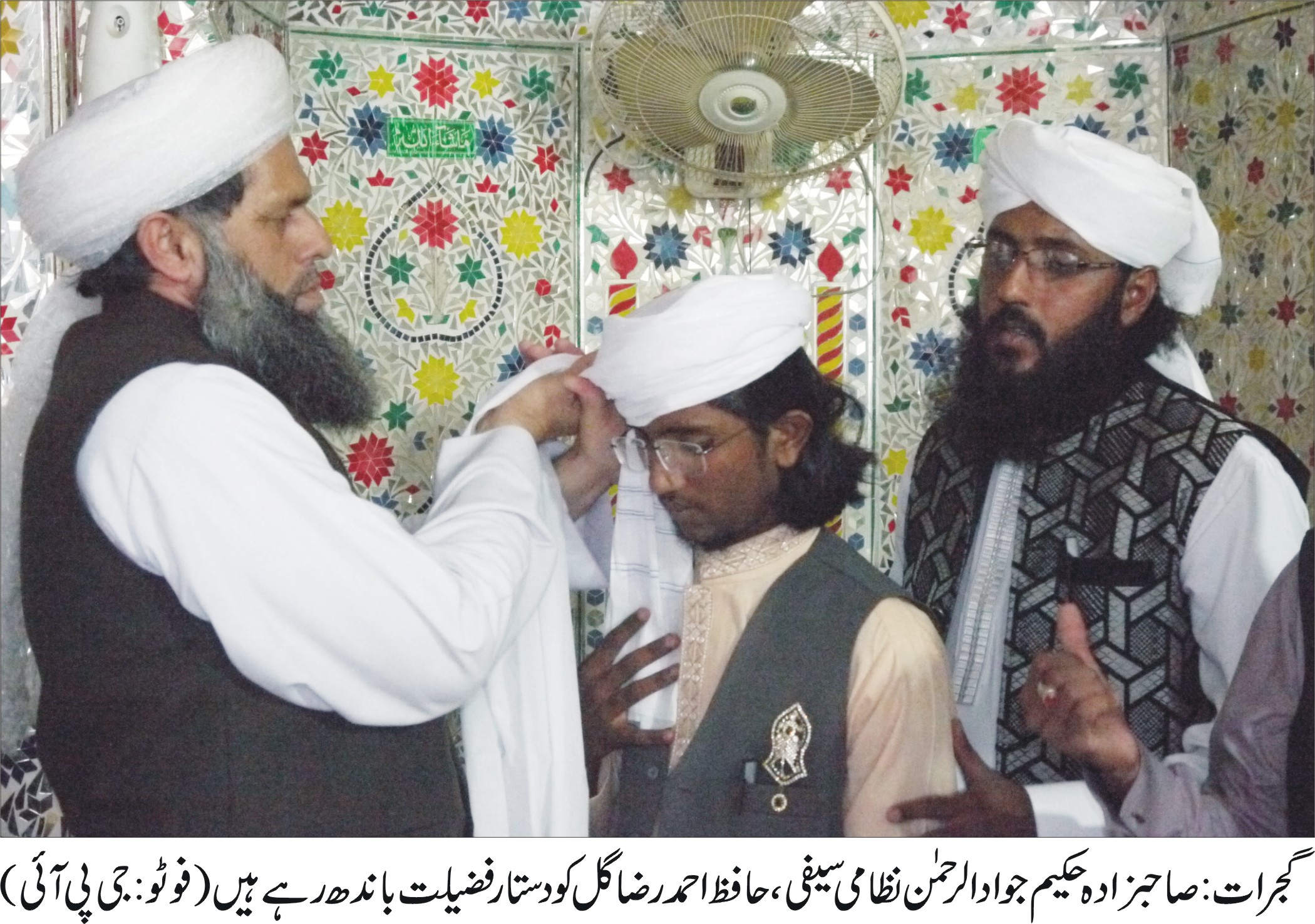 گجرات (جی پی آئی) ضلع گجرات کی ممتاز روحانی شخصیت صاحبزادہ قاری عامر رضوان قادری کے صاحبزادے حافظ محمد احمد کی دستار بندی کی تقریب جامع مسجد عبدالستار منعقد ہوئی جس کی صدارت صاحبزادہ قاری عامر رضوان قاری نے کی۔ جبکہ مہمان خصوصی ممتاز روحانی شخصیت صاحبزادہ پیر حکیم جوادالرحمن نظامی سیفی تھے۔ تلاوت قرآن پاک کا شرف ممتاز قاری قرآن قاری محسن رضا قادری نے حاصل کیا۔ ہدیہ نعت بحضور ۖ اکمل حسین دریائی نے پیش کیا۔ خصوصی خطاب ممتاز عالم دین علامہ احمد رضا اشرفی نے کیا۔ اس موقع پر ہر مکتبہ فکر سے تعلق رکھنے والے کثیر افراد نے شرکت کی۔ صاحبزادہ حکیم جواد الرحمن نظامی سیفی نے دستار بندی کی اور خصوصی دعا کرائی۔ شرکاء کرام میں عمر شریف قادری’ چوہدری فراز انجم جٹ’ سید طلحہ عارف شاہ’ حافظ محمد فیصل خاں’ محمد افضال خان’ حافظ محمد قاسم’ حاجی ظفر اقبال بٹ’ چوہدری ظفر حسین ورک’ چوہدری احسان اللہ گل’ چوہدری بابر حسین ورک’ چوہدری ثقلین’ چوہدری محمد آصف’ سیٹھ بلال صراف’ قاری ظفر اقبال’ حافظ محمد صغیر احمد’ چوہدری حسن اشرف گل’ حافظ بلاول سلطان ‘ قاری افضال احمد’ قاری سمیر علی’ قاری احمد حسن جامی’ قاری اسامہ بابر’ سیٹھ محمد عبدالرشید صراف’ قاری حمزہ امتیاز’ چوہدری حسنین ریاض گل’ سیٹھ جاوید اقبال عطاری’ محمد عثمان’ چوہدری جہانگیر ورک’ راجہ شہزاد احمد’ محمد بشارت علی’ ‘حاجی محمد انور’ ارسلان یوسف’ ڈاکٹر زمان عطاری’ علامہ قاری شہزاد ظفر عطاری’ ہادی بٹ’ محمد بلال حسین’ ملک عبدالرحمن’ حافظ سفیر احمد’ چوہدری محمد علی’ چوہدری محمد صفدر’ چوہدری چوہدری شہزاد صفدر’ چوہدری محمد عثمان حسین لمبرداڑ’ چوہدری سہیل اجمل گل’ چوہدری شعیب عمران گل’ حافظ راحیل سہیل گل’ چوہدری انضام الحق گجر’ چوہدری فیضان گجر’ چوہدری حیدر علی گل’ چوہدری محمد علی اکبر گل’ چوہدری حماد علی گل’ چوہدری حسن منیر’ چوہدری ہارون جاوید’ چوہدری تیمور علی تارڑ’ چوہدری نبیل رضا گل’ چوہدری توحید راحیل گل’ و دیگر شامل تھے۔ اس موقع پر شرکاء کیلئے لنگر کا وسیع انتظام کیا گیا۔