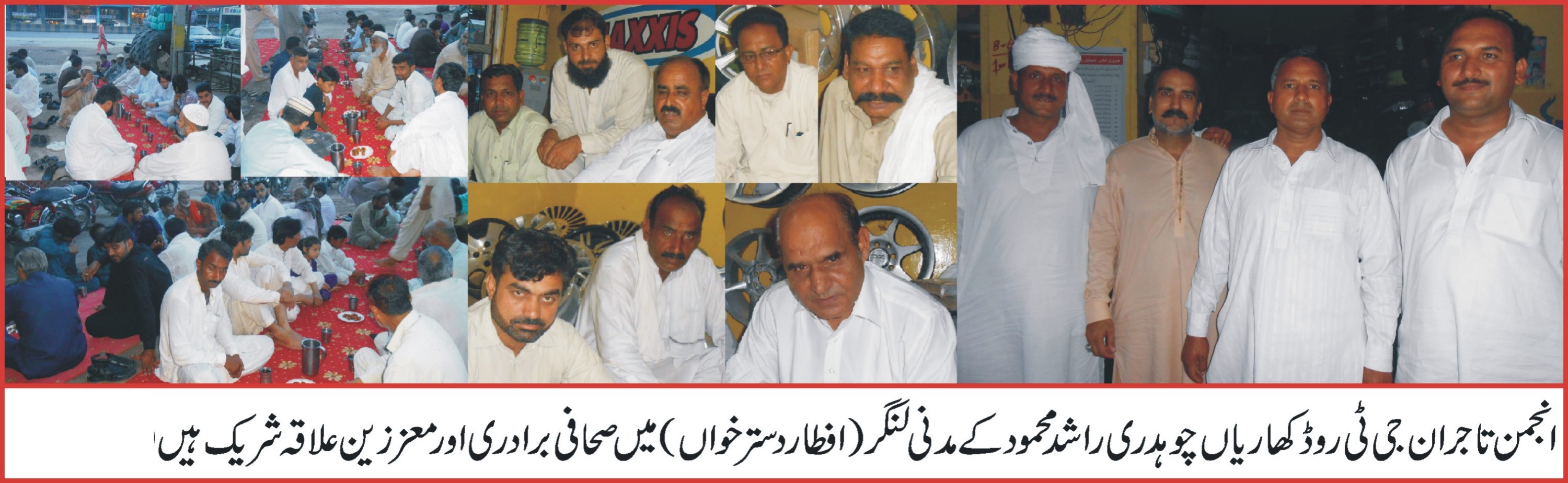 گجرات:انجمن تاجران جی ٹی روڈ کھاریاں چوہدری راشد محمود کے مدنی لنگر میں صحافی برادری اور معززین شریک ہیں۔