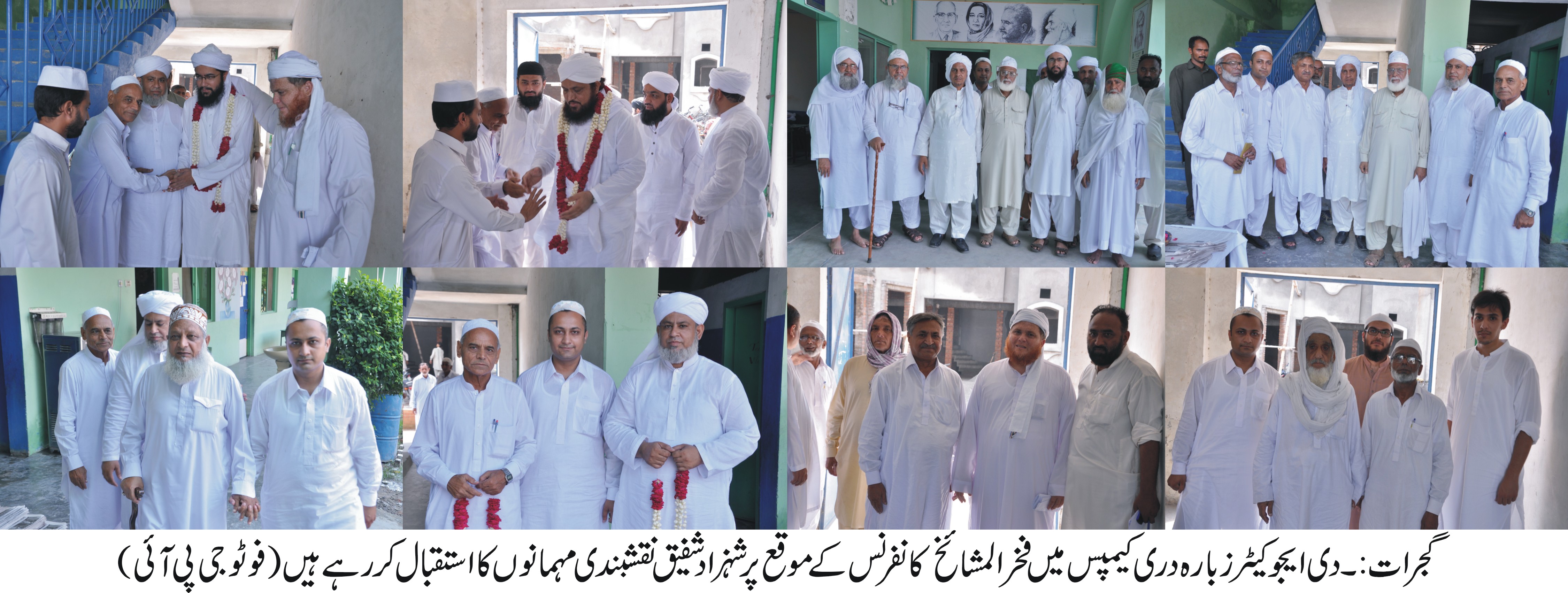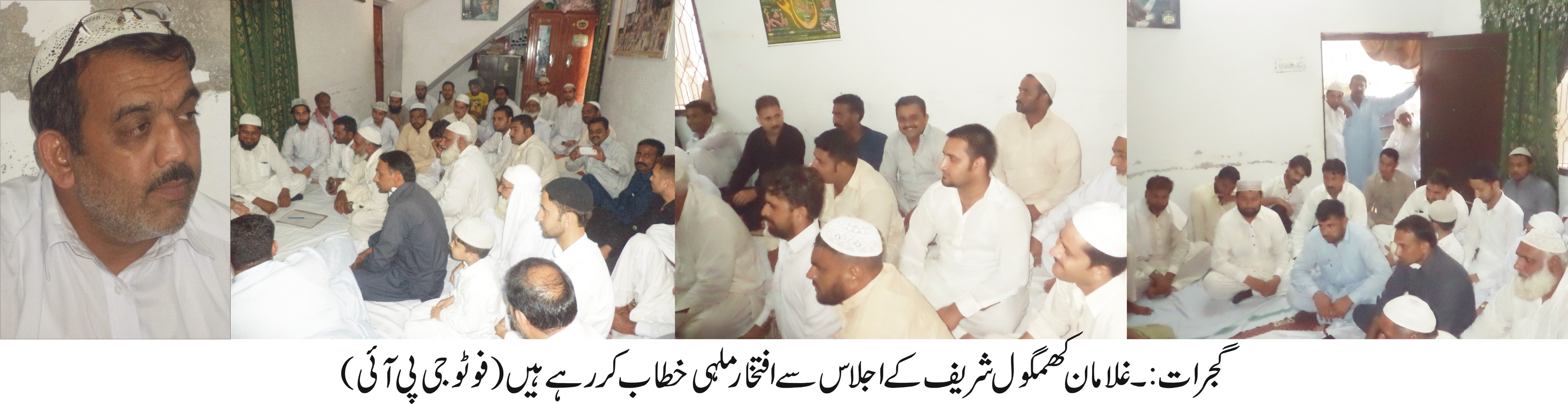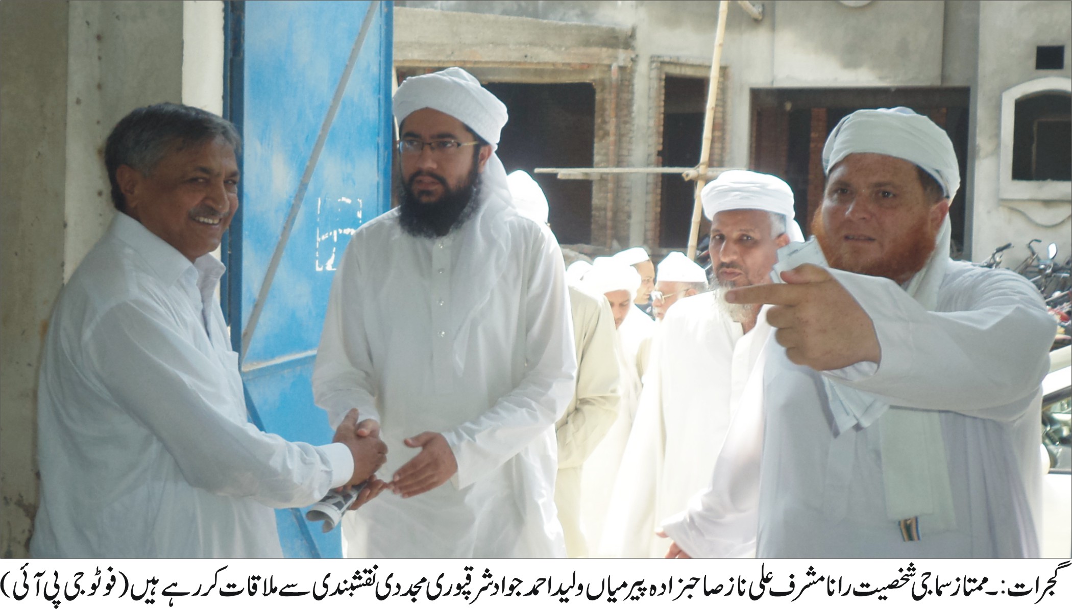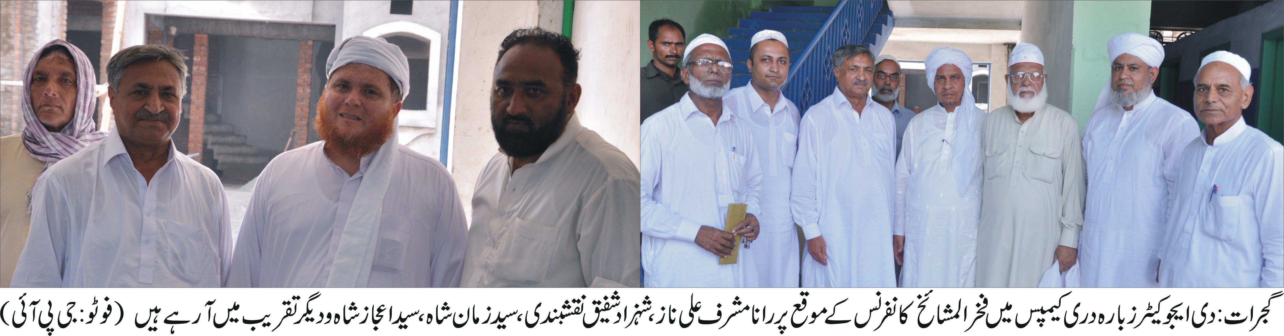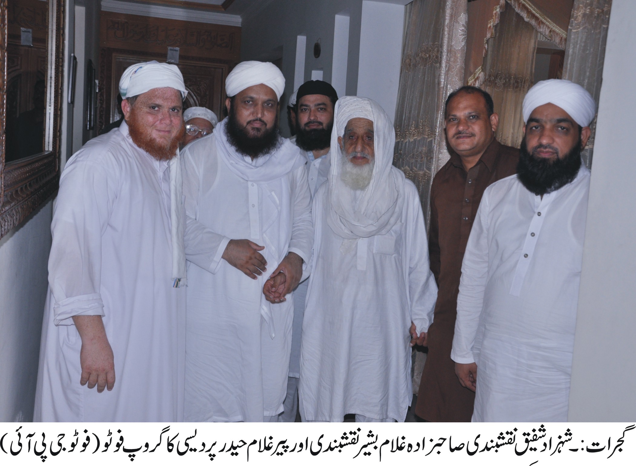 گجرات: شہزاد شفیق نقشبندی صاحبزداہ غلام بشیر نقشبندی اور پیر غلام حیدر پر دیسی کا گروپ فوٹو۔