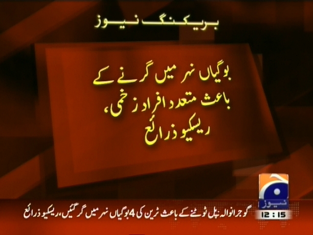 گوجرانوالہ کے موضع چھنانواں کے قریب ریلوے ٹریک کا پل ٹوٹ گیا، پل ٹوٹنے کے باعث ٹرین کی 4 بوگیاں نہر میں گر گئیں، بوگیاں نہر میں گرنے کے باعث متعدد افراد زخمی ہوگئے، ریسکیو ذرائع۔