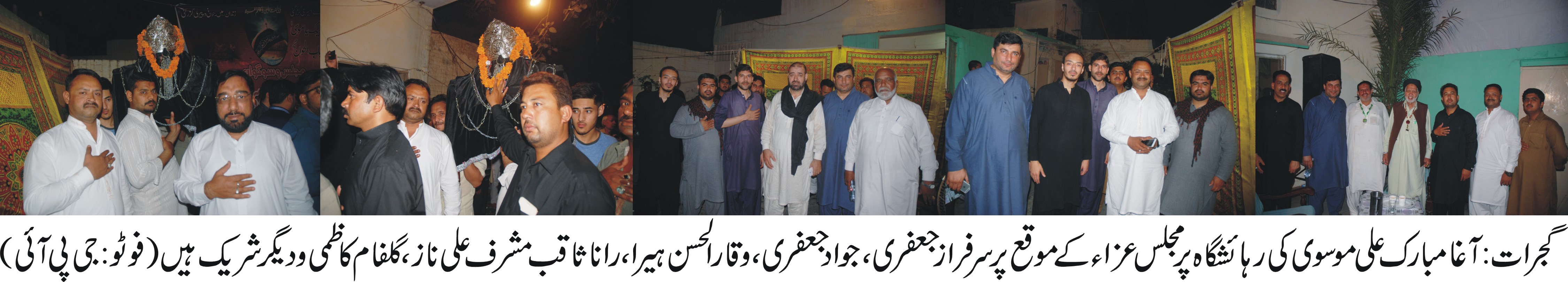 گجرات (جی پی آئی) حضرت امام موسی کاظم کے یوم شہادت کے سلسلہ میں ممتاز مذہبی راہنما آغا مبارک علی موسوی کی رہائشگاہ پر مجلس عزاء منعقد کی گئی۔ جس میں ملک کے ممتاز ذاکرین و علماء کرام نے فضائل و مصائب امام موسی کاظم بیان کیے۔ مجلس کے اختتام پر کاتمی جلوس شبیہ تابوت امام موسی کاظم برآمد ہوا جوکہ اپنے مقرر کردہ راستوں سے ہوتا ہوا واپس آغا مبارک علی موسوی کی رہائشگاہ پر اختتام پذیر ہوا۔ ذاکر غلام عباس، ذاکر علامہ زمان حسینی ودیگر نے خطاب کیا۔