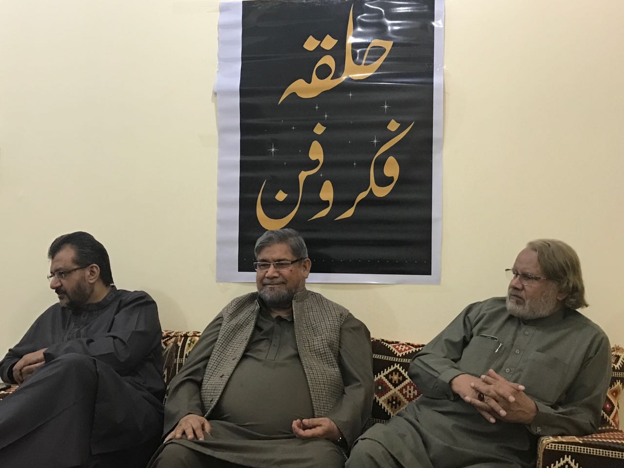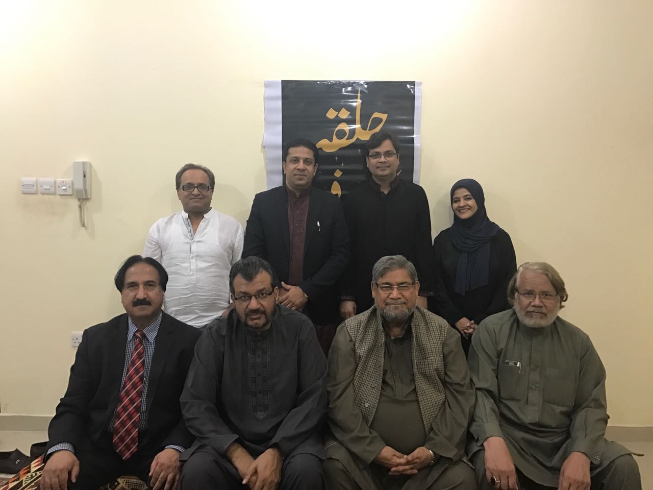 حلقہء فکروفن کے زیرِ اہتمام مایہ ناز شاعر جون ایلیاء کی یاد میں ایک ادبی نشست حلقہء فکروفن کے صدر ڈاکٹر محمد ریاض چوہدری کی زیرِ صدارت ریاض کے معروف شاعر محمد صابر قشنگ کے دولت کدہ پر منعقد ہوئی جس کے مہمانِ خصوصی ادب دوست و ادب نواز پاکستان انٹرنیشنل آیتر لائنز کے مارکیٹنگ منیجر جناب محمدارشد شیخ تهے، نظامتکے فرائض حلقہء فکر و فنکے سیکرٹریجنرلوقارن سیموامقنے خوشاسلوبی سے سرانجام دئیے۔ نشستکا آغاز ڈاکٹر معمود احمد باجوہ کیتلاو تقرآنپاک سے ہوا میزبان شاعرِ فکروفن محمد صابر قشنگ مہمانوں کو خوش آمدید کہا۔