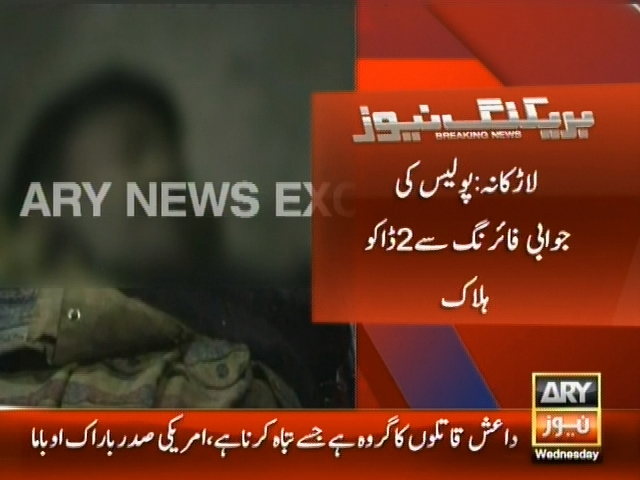 لاڑکانہ: بائی پاس پر ڈاکوں کی پولیس موبائل پر فائرنگ، لاڑکانہ: پولیس کی جوابی فائرنگ سے 2 ڈاکو ہلاک، ہلاک ڈکیت متعد مقدمات میں مطلوب تھے پولیس۔