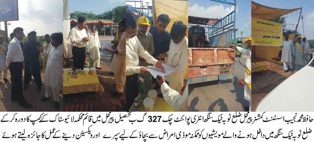 پیرمحل ( نامہ نگار ) اے سی پیرمحل کا ویٹرنری عملہ کے ساتھ چک 327گ ب تحصیل پیرمحل میں قائم محکمہ لائیوسٹاک کے کیمپ کا دورہ ضلع ٹوبہ ٹیک سنگھ میں داخل ہونے والے مویشیوں کوممکنہ موذی امراض سے بچائو کے لیے سپرے کا حکم تفصیل کے مطابق حافظ محمد نجیب اسسٹنٹ کمشنر پیرمحل نے ہمراہ ڈی ایل او ضلع ٹوبہ ٹیک سنگھ انٹر ی پوائنٹ چک 327گ ب تحصیل پیرمحل میں قائم محکمہ لائیوسٹاک کے کیمپ کا دورہ کرکے ضلع ٹوبہ ٹیک سنگھ میں داخل ہونے والے مویشیوں کوممکنہ موذی امراض سے بچائو کے لیے سپرے اور ویکسیئن دینے کے عمل کا جائزہ لیا انہوںنے کانگو وائرس کے پیش نظر ضلع کی حدود میں داخل ہونے والے جانوروں کے اندراج ، اور ان کی دوسرے علاقوں کو بھجوانے اور ان کی مکمل ویکسین اور چیک اپ کرکے گاڑی میں سپرے کرنے کے عمل کا جائزہ لیتے ہوئے ویٹرنری عملہ کو ہدایات جاری کی۔