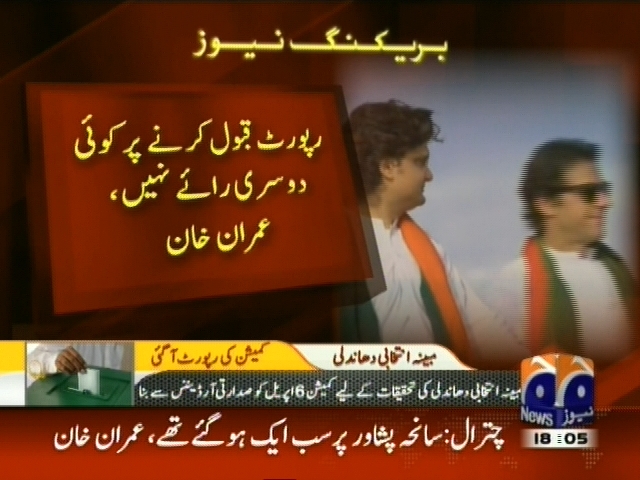 عمران خان نے جوڈیشل کمیشن کا فیصلہ قبول کر لیا، رپورٹ قبول کرنے کی بات تو پہلے دن کہ چکا تھا، رپورٹ قول کرنے پر کوئی دوسری رائے نہیں، عمران خان۔