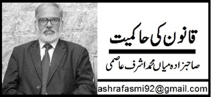 تحریر : صاحبزادہ میاں محمد اشرف عاصمی ایڈووکیٹ ہائی کورٹ