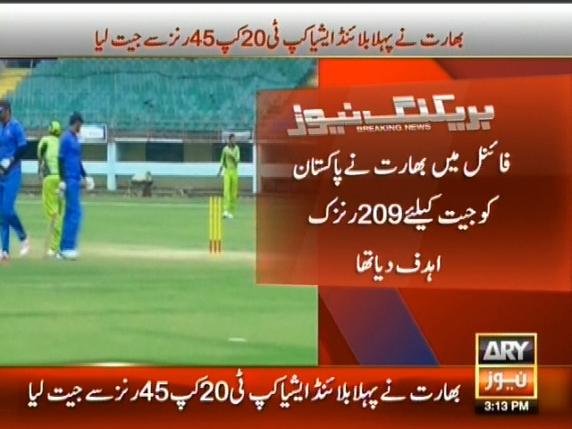 بھارت نے پہلا بلائنڈ ایشیا کپ ٹی 20 کپ 45 رنز سے جیت لیا، فائنل میں بھارت نے پاکستان کو جیت کیلئے 209 رنز کا ہدف دیا تھا، پاکستان بلائنڈ ٹیم 163 رنز بنا سکی۔