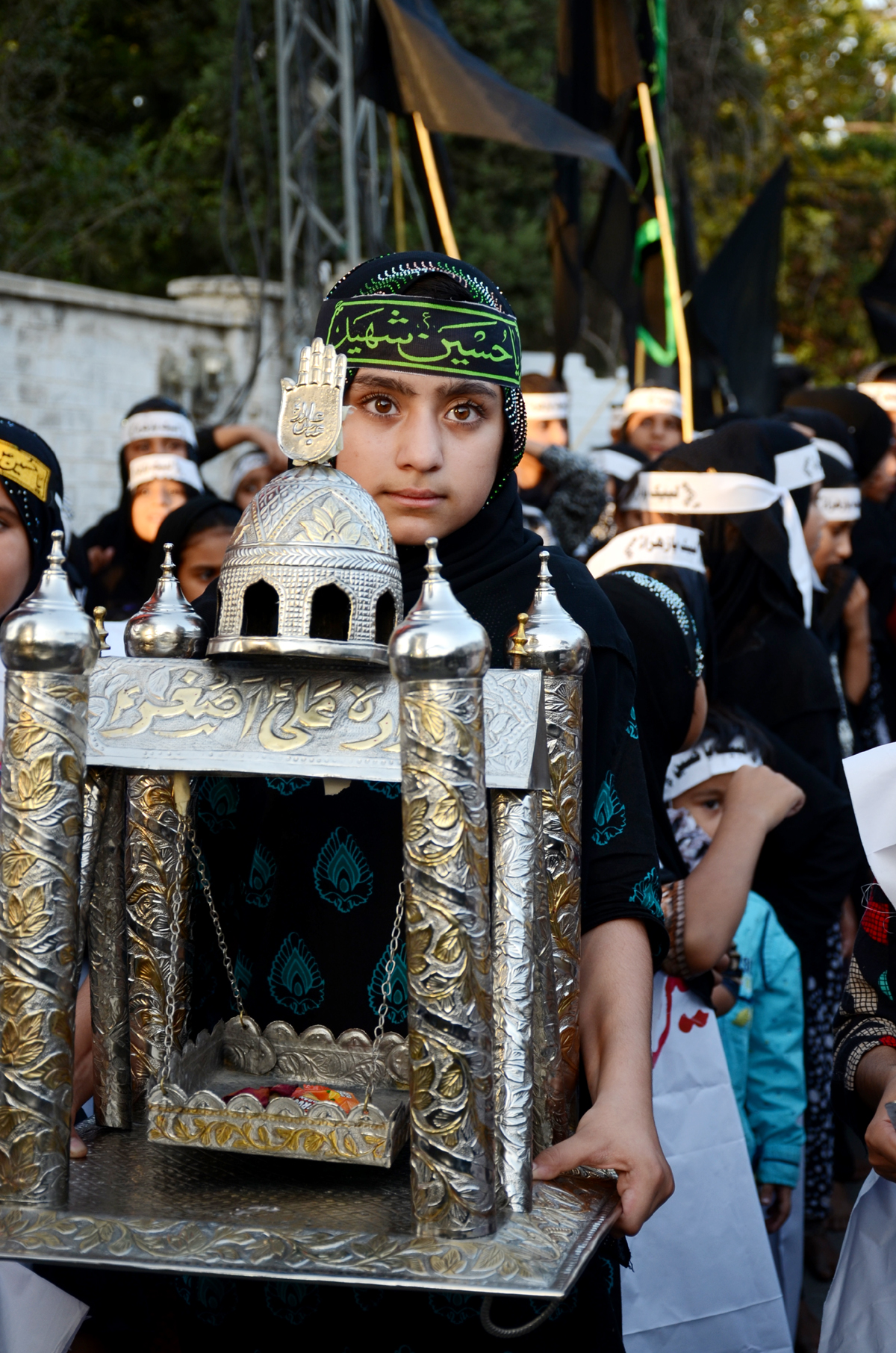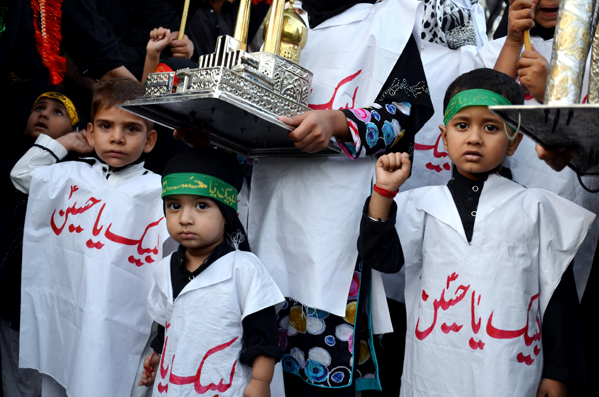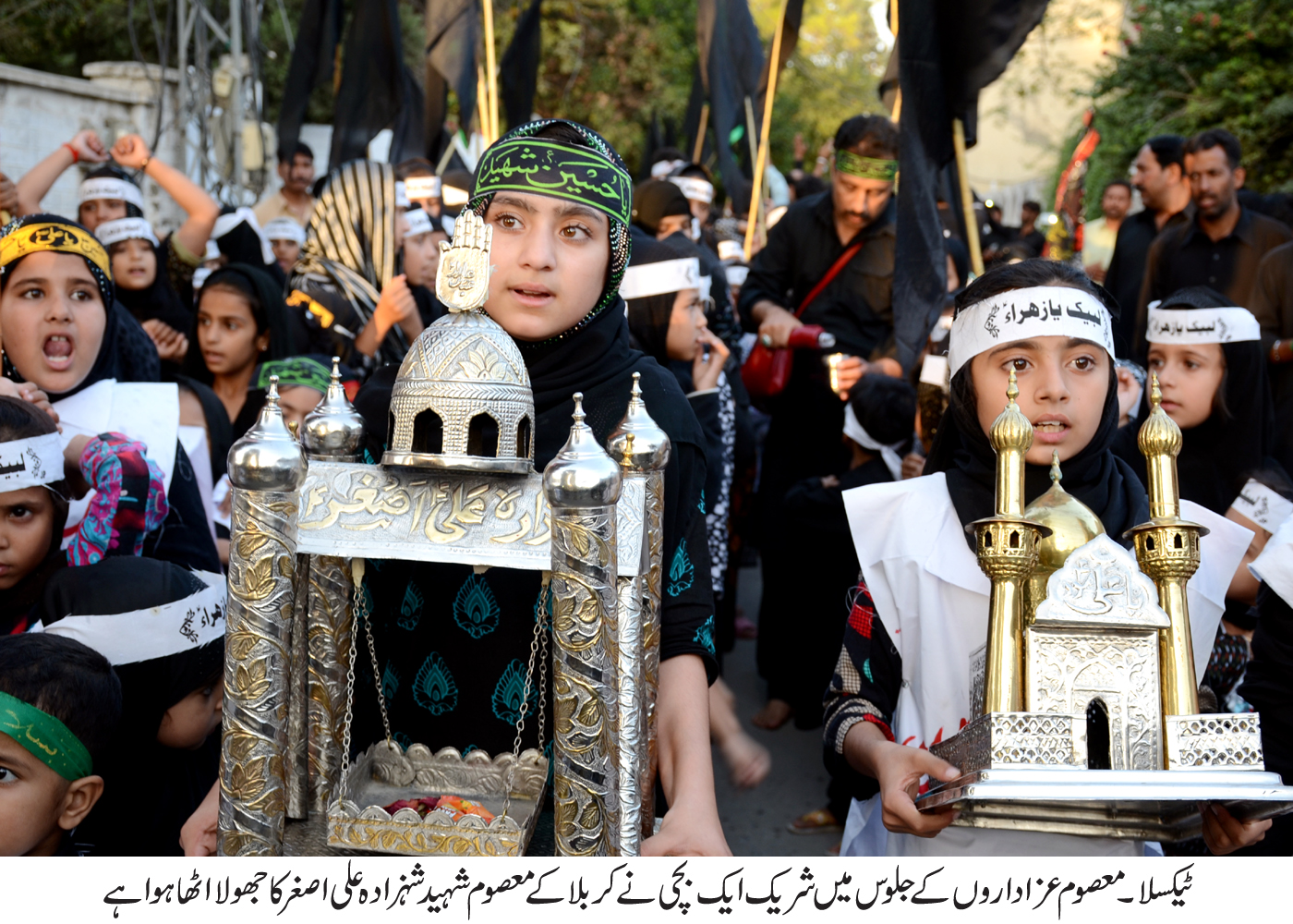 بچوں کے جلو س میں معصوم اداروں نے جسم پر سفید کپڑوں کے نمائیاں لباس زیب تن کر رکھے تھے جس پر لبیک یا حسین لکھا ہوا تھا، جلوس میں منتظمین میںسید ارسلان حیدر نقوی،سید شبیر حسین شاہ،سید محسن نقوی،سید سجاد حسین شاہ،سید توصیف حسین، سید اسد حسین شاہ، سردار ریاض حسین شاہ و دیگر شامل تھے ، معصوم بچوں کا جلوس جب کربلا فتح حیدر صفدرداخل ہوا تو سید ریاض حسین شاہ اور معصوم عزاداروں کی ماوں نے آبدیدہ آنکھوں سے بچوں کا استقبال کیا،جلوس میں شامل بچوں نے کربلا کے سب سے کمسن شہید شہزادہ علی اصغر کے جھولے بھی اٹھائے ہوئے تھے۔