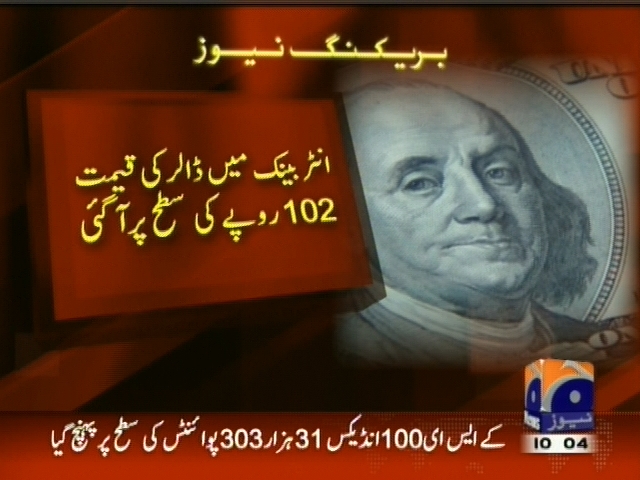 ۔ انٹر بینک میں ڈالر 2 ماہ کی کم ترین سطح پر دیکھا جارہا ہے۔ انٹر بینک میں ڈالر کی قیمت میں 31 پیسے کی کمی آئی ہے، انٹر بینک میں ڈالر کی قیمت 102 روپے کی سطح پر آگئی۔