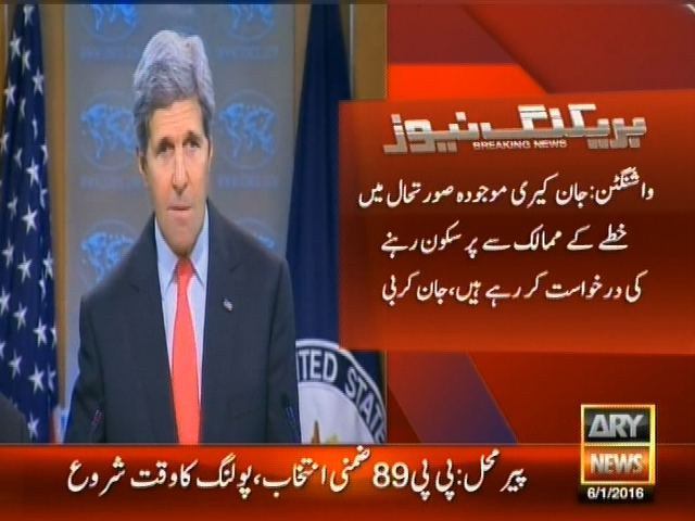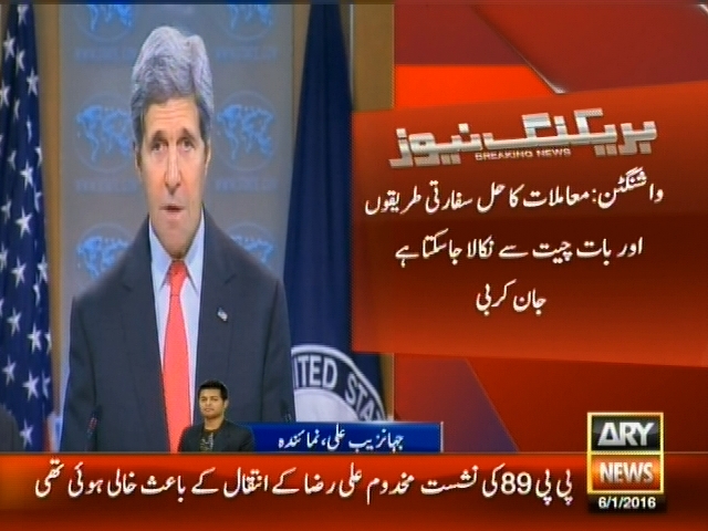 ایران اور سعودی عرب میں کشیدگی کم کرنے کیلئے امریکا کی کوششیں تیز، معاملات کا حل سفارتی طریقوں اور بات چیت سے نکالا جاسکتا ہے، جان کیری موجودہ صورتحال میں خطے کے ممالک سے پرسکون رہنے کی درخواست کر رہے ہیں، جان کیری۔