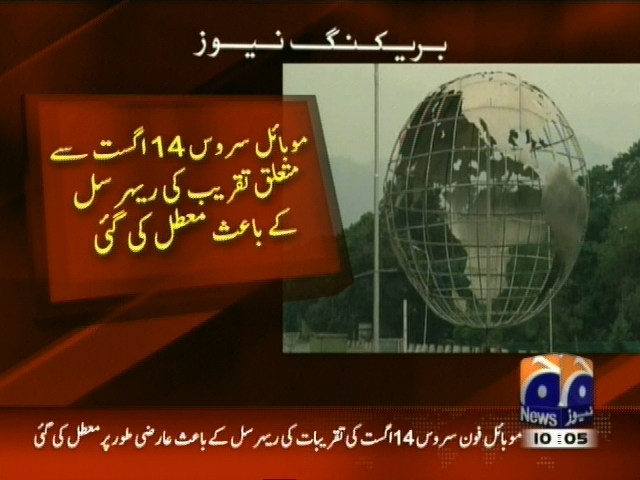 اسلام آباد کے چند سیکٹرز میں موبائل سروس جزوی طور پر معطل، موبائل سروس 14 اگست سے متعلق تقریب کی ریہرسل کے باعث معطل کی گئی۔