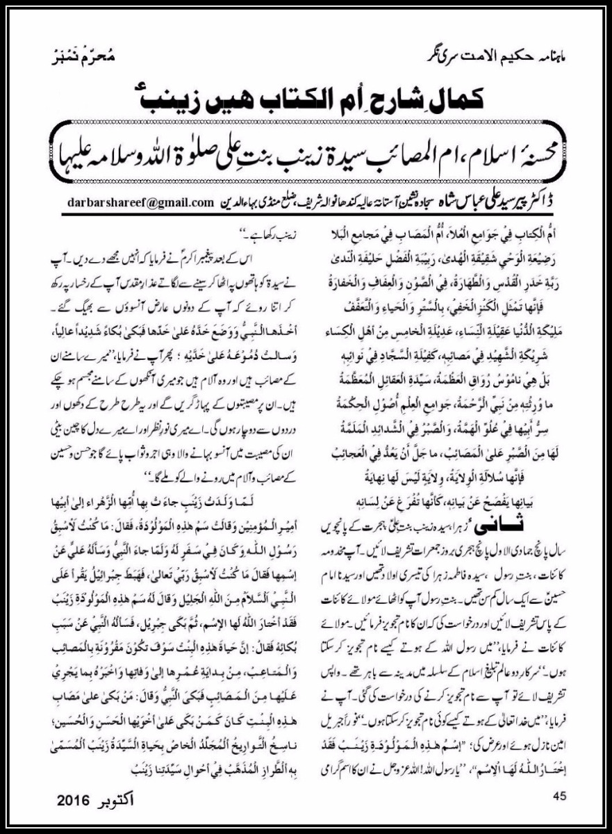 اسلام آباد : کمالِ شارحِ ام الکتاب ہیں زینب س از ڈاکٹر سید علی عباس شاہ۔