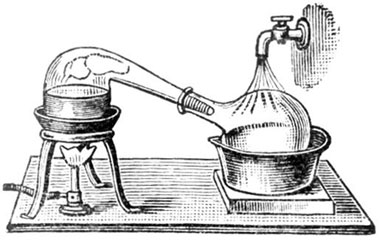 ایک حصہ میں کمیاوی مادوں کو پکایا جاتا اور مرکب سے اٹھنے والی بخارات کو نالی کے ذریعہ آلہ کے دوسرے حصہ میں پہنچا کر ٹھنڈا کر لیاجاتا تھا ۔یوں وہ بخارات دوبارہ مائع حالت اختیار کر لیتے ۔کشیدگی کا یہ عمل کرنے کے لئے آج بھی اس قسم کا آلہ استعمال کیاجاتا ہے ۔اس کا موجود ہ نام ریٹاٹ ہے ۔