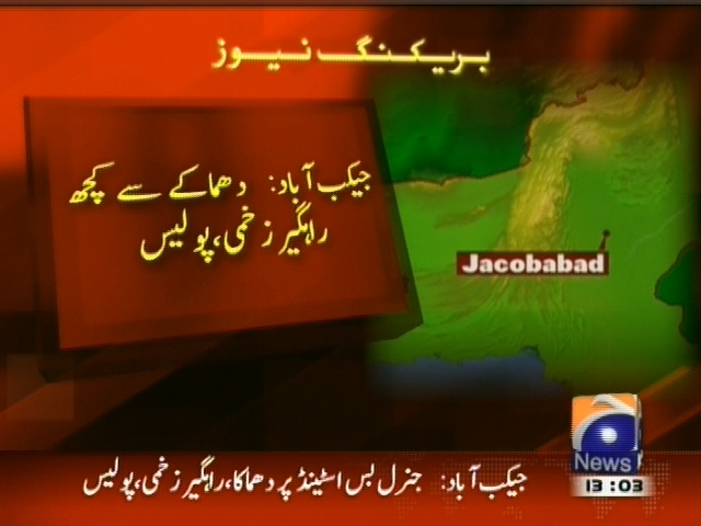 جیکب آباد: جنرل بس اسٹینڈ پر دھماکہ، پولیس۔ دھماکے سے کچھ راگیر زخمی، پولیس۔ دھماکہ موٹر سائیکل میں ہوا، پولیس۔