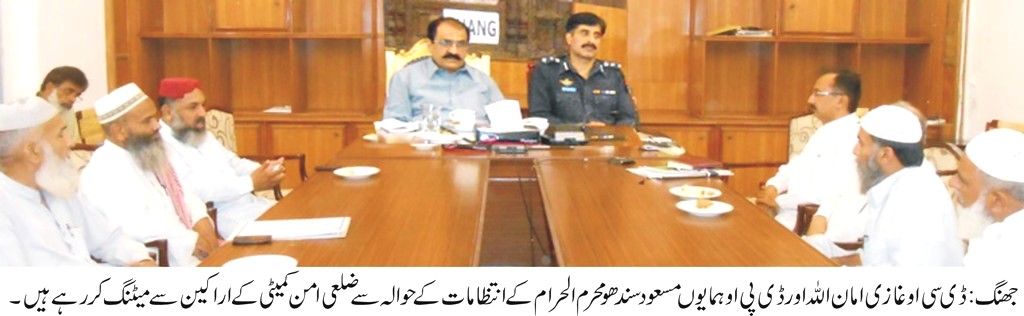 جھنگ (ڈسٹرکٹ رپورٹر) ضلعی اتنظامیہ نے محرم الحرام کے دوران امن و امان برقرار رکھنے کے لئے جامع حفاظتی و انتظامی اقدامات کئے ہیںجن کی کامیابی کے لئے امن کمیٹی کے ارکان ،میڈیا، علماء کرام ،دینی و مذہبی حلقوں اورمعاشرہ کے دیگر تمام طبقوں کا تعاون از بس ضروری ہے۔ یہ بات ڈسٹرکٹ کوآرڈی نیشن آفیسر غازی امان اللہ نے ضلعی امن کمیٹی کے خصوصی اجلاس کی صدارت کرتے ہوئے کہی۔ڈی پی او ہمایوں سندھوبھی اس موقع پر موجود تھے۔اجلا س میں ضلعی امن کمیٹی کے ارکان ،ضلعی انتظامیہ کے افسران نے شرکت کی۔ ڈی سی او غازی امان اللہ نے تمام مکاتب فکر کے علماء کرام کے شاندار کردار کو سراہتے ہوئے کہا کہ محرم الحرام کے دوران ضلع بھر میں امن و امان کی مثالی فضاء کو برقرار رکھنے کیلئے بین المذاہب ہم آہنگی اور رواداری کا فروغ وقت کا شدید تقاضا ہے جس کیلئے مذہبی طبقات اپنی صفوں میں اتحادبرقرار رکھیں کیونکہ اس وقت ملک کو سنگین حالات کاسامنا ہے۔ لہذا داخلی امن کو برقراررکھنا بے حد ضروری ہے ۔انہوں نے امن کمیٹی کے ارکان سے کہا کہ وہ انتظامیہ کی معاونت کیلئے ماتمی جلوسوں اور مجالس میں ساتھ رہیںاور غیر متعلقہ افراد پر کڑی نظر رکھیں ، مشکوک افراد کے بارے میں فوری طور پر ڈیوٹی پر تعینات پولیس افسران کو آگاہ کیا جائے تاکہ کسی شر پسند اور تخریب کار شخص کو اپنے مذموم عزائم کو پورا کرنے کا موقع نہ مل سکے۔ اجلاس میں ڈی پی او ہمایوں مسعود سندھو نے بتایا کہ سیکورٹی پلان کے تحت ضلع کی چاروںتحصیلوں میں ہر سطح پر محرم کے ماتمی جلوسوں اور مجالس کی فول پروف سیکورٹی کو یقینی بنانے کے لئے پولیس دستوں کوڈیوٹیز تفویض کی گئی ہیں جو ہمہ وقت متحرک رہیںگے۔اس موقع پر تمام مسالک کے علماء کرام اور امن کمیٹی کے دیگر ارکان نے اس سلسلہ میں ضلعی انتظامیہ اورپولیس کے ساتھ اپنے مکمل تعاون کا یقین دلایا ۔